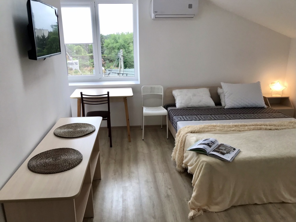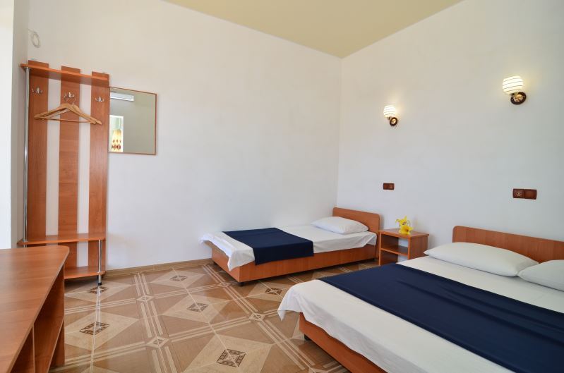 Для размещения своих гостей мини-отель предлагает двух- или трехместные комфортабельные номера. Все номера оборудованы необходимой мебелью, кондиционером, холодильником, душевой комнатой и интернетом wi-fi. На прилегающих балконах, оснащенных летней мебелью, Вы можете насладиться прекрасными крымскими вечерами. Мини-отель располагает местами для автостоянки.