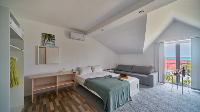 В номере имеется высокоскоростной Wi-Fi и балкон с летней мебелью, предоставляется постельное белье, комплект полотенец и туалетные принадлежности. Уборка номера включена в стоимость проживания.