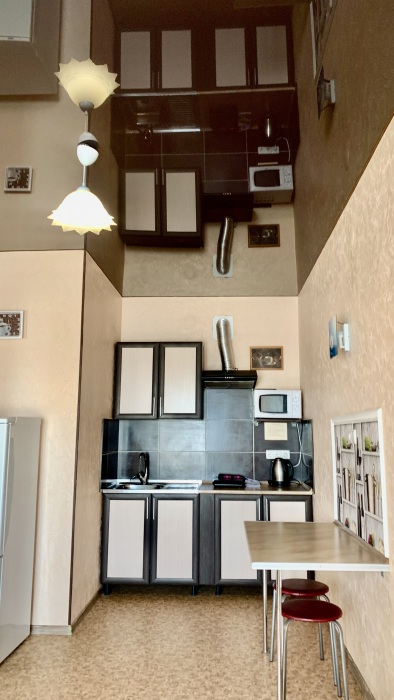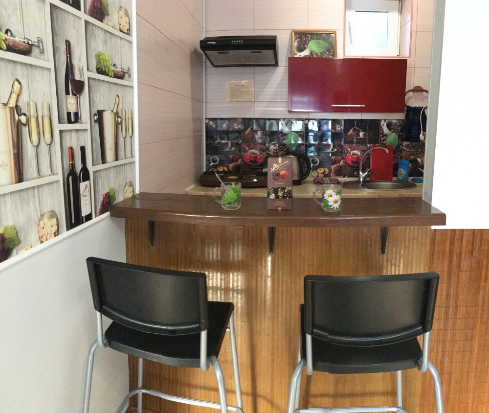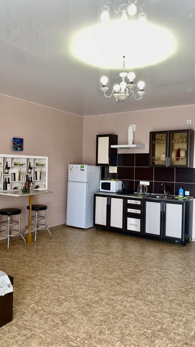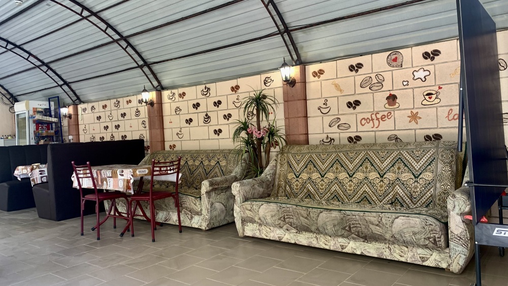 *Отдельно кухня - столовая с телевизором, столиками, диванами.