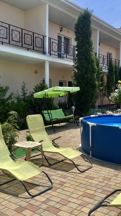 *бассейн и лежаки,