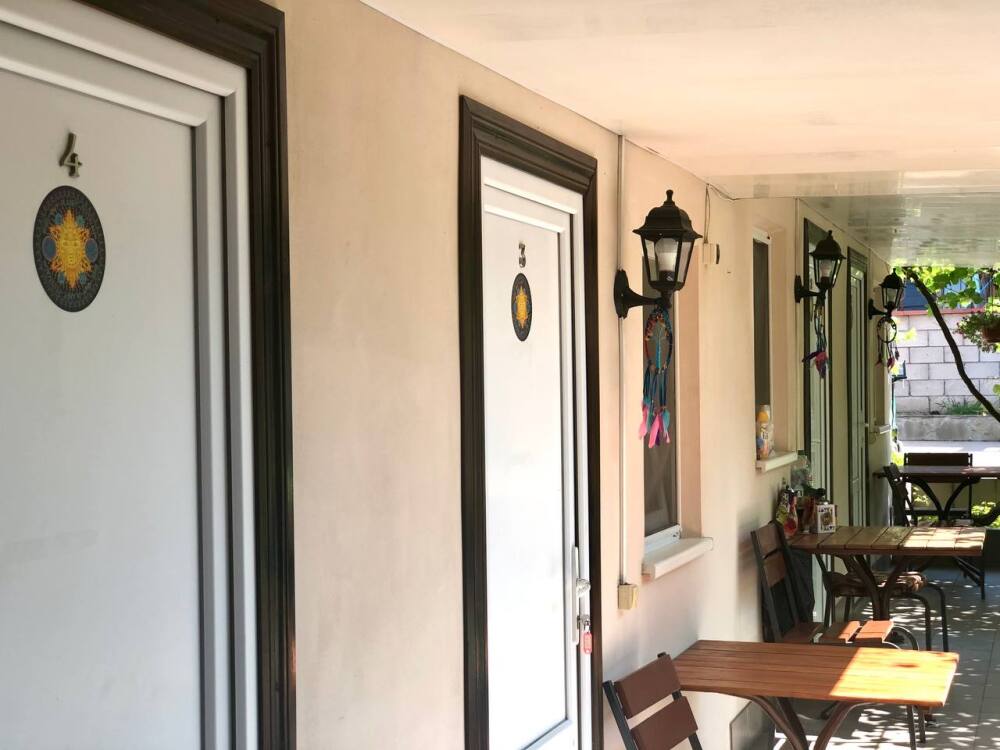 Возле каждого номера есть небольшая веранда, на которой приятно проводить теплые летние вечера в приятной компании.
