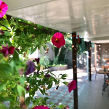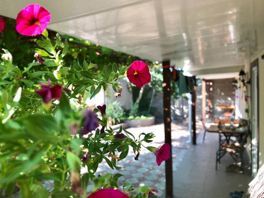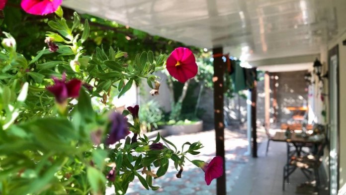Территория гостевого дома уютная, тенистая, с большим количеством зеленых насаждений.