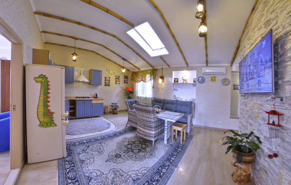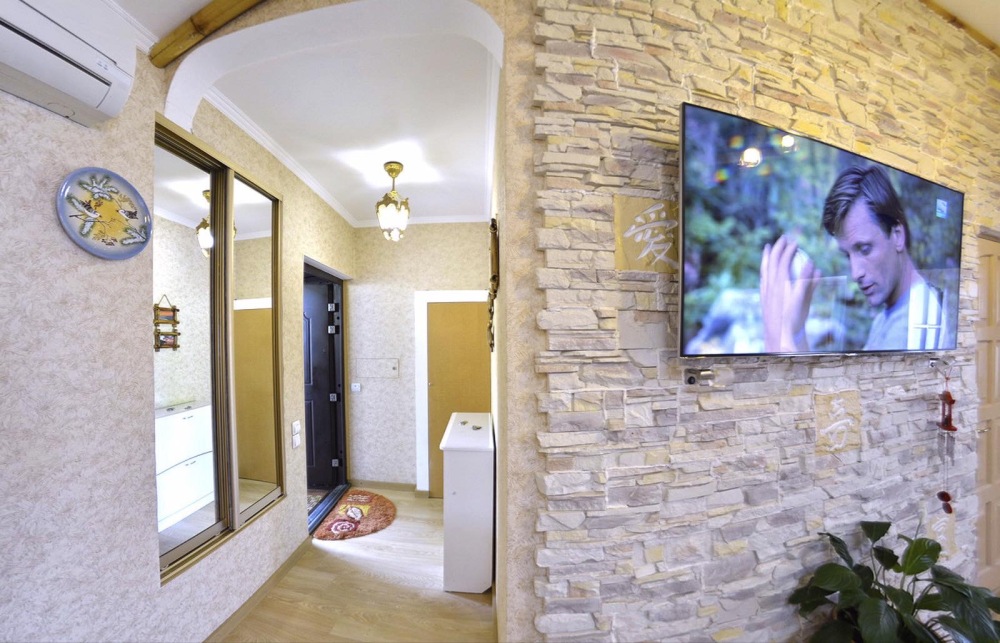 горячая/холодная вода, стиральная машина автомат, холодильник, кондиционер, 2 телевизора, кабельное телевидение, Wi-Fi интернет, утюг, фен, постельное бельё, полотенца. На самом этаже есть открытая веранда, относящаяся только к 3 этажу.