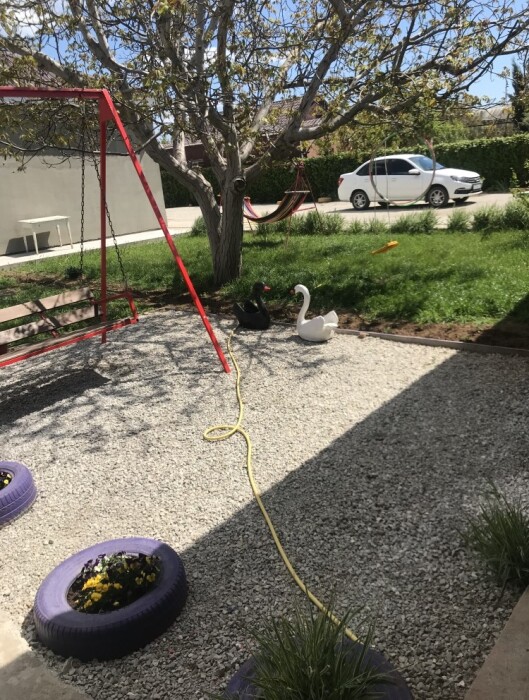 Уютный закрытый дворик с парковкой. Зона отдыха. Кухня общая на 2 номера: 2 раковины, стиральная машина, микроволновка, газовая плита, большой холодильник и вся необходимая посуда. Интернет, Wi-Fi на всей территории двора.
