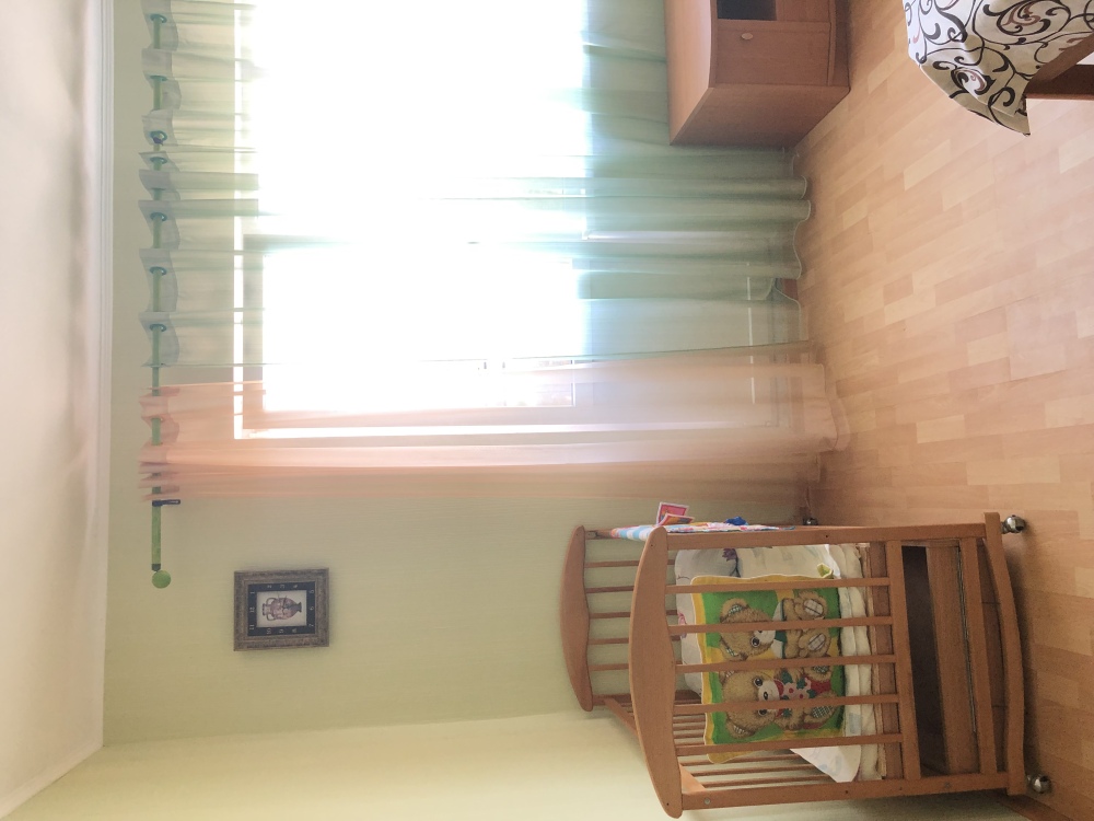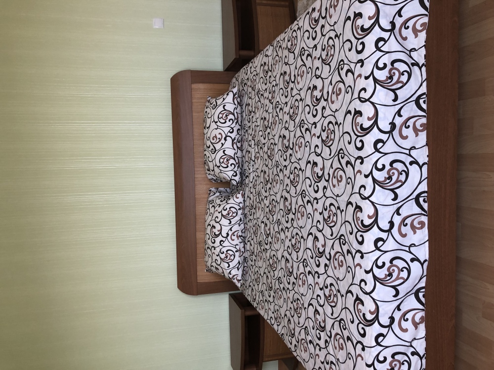 В одной спальне стоит двухспальная кровать и Детская кроватка, во второй спальне стоит раскладной диван и односпальная кровать.