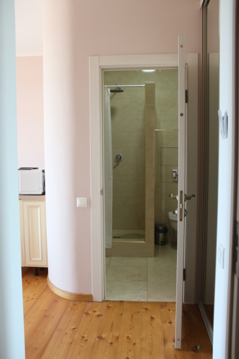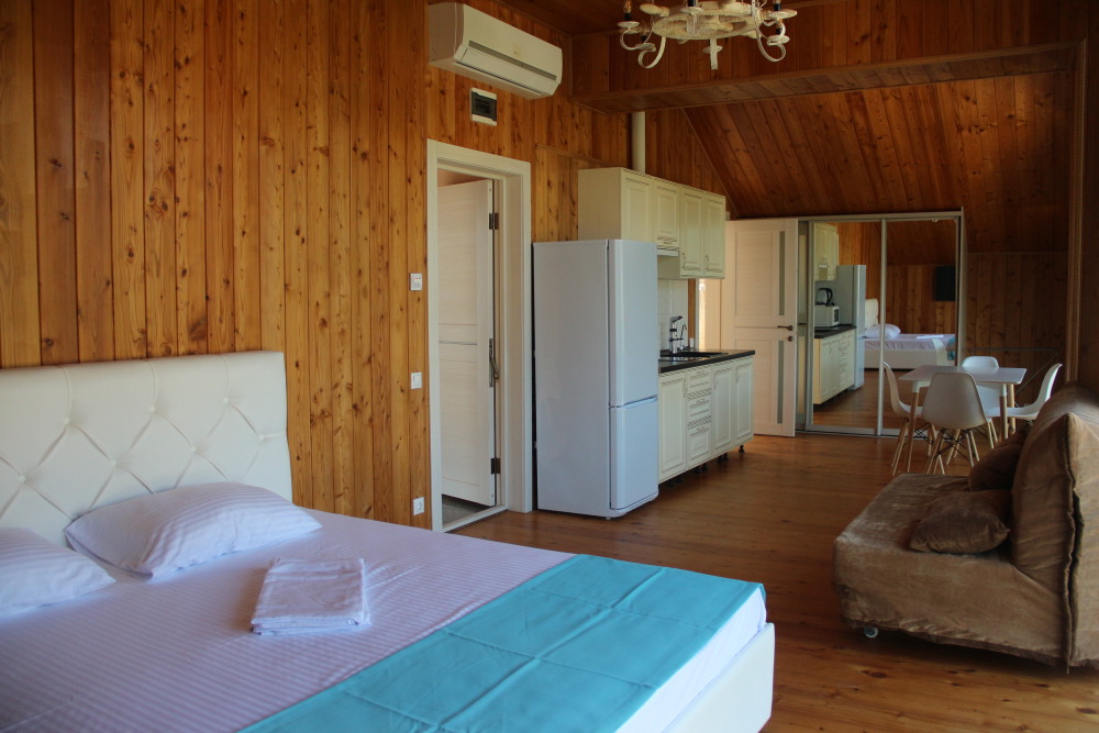 Представляем вашему вниманию изысканный номер с захватывающим видом на море. В номере обустроена роскошная двуспальная кровать с ортопедическим матрасом, обеспечивающим максимальный комфорт и здоровый сон. Этот номер, построенный в 2021 году с использованием современных технологий и европейского дизайна, оснащён последними удобствами, включая высококачественный телевизор и современный кондиционер, создающий оптимальный климат в любое время года. Расположенный всего в четырёх минутах ходьбы от берега моря, этот номер обещает незабываемые утренние и вечерние прогулки по побережью.