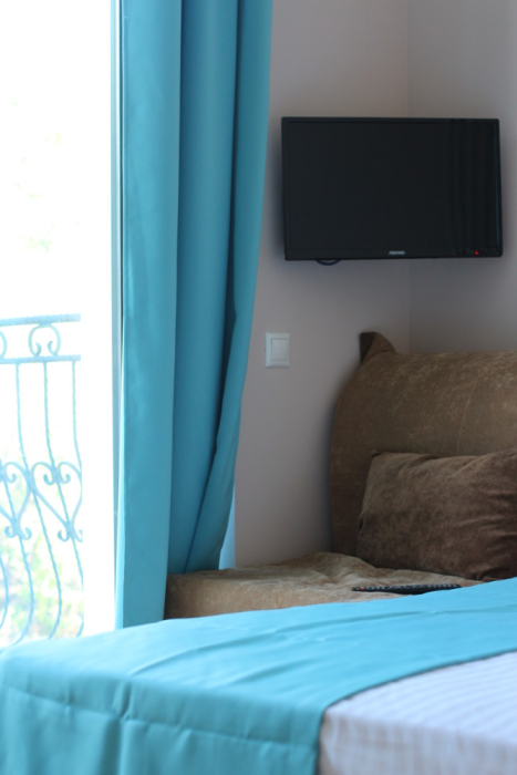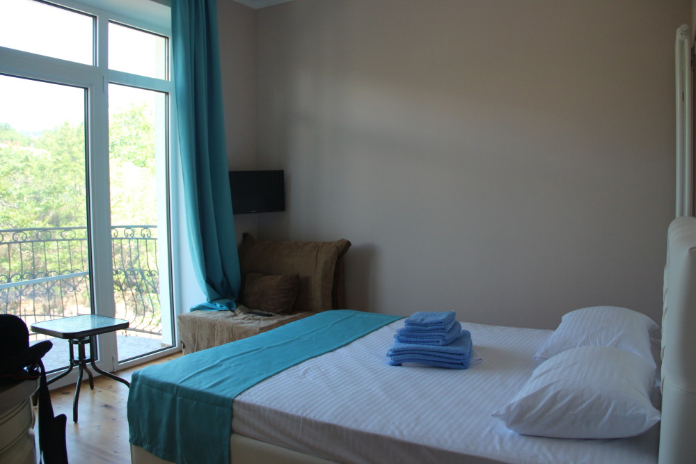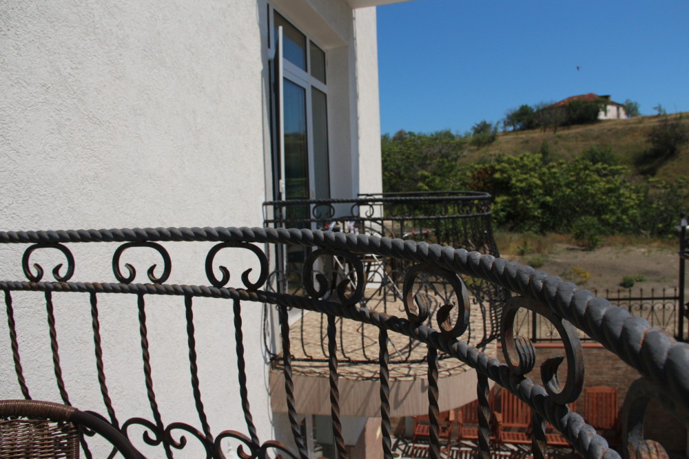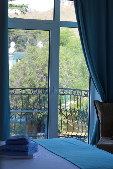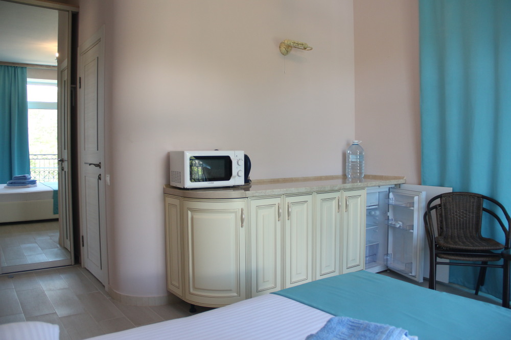 Элегантные номера с захватывающим видом: каждый из 11 тщательно спроектированных номеров выходит на собственный балкон, откуда открывается потрясающий вид на величественный заповедник кара-даг или чарующее черное море. Просыпайтесь под нежные звуки природы и наслаждайтесь живописной красотой прямо из своей комнаты. Интерьеры продуманно оформлены и оснащены телевизорами с плоским экраном, кондиционерами и просторными местами для хранения вещей, что обеспечивает комфортное и удобное пребывание.