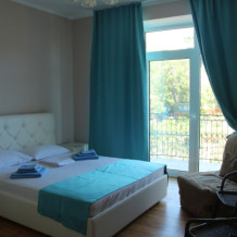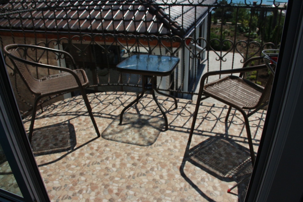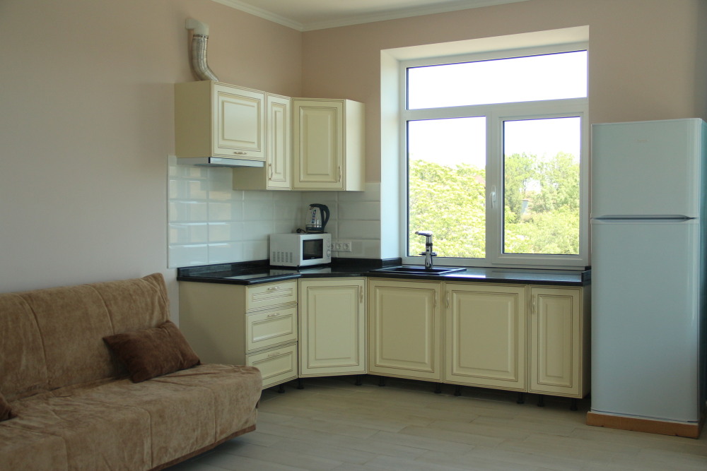 Номер класса люкс с прямым выходом во двор, можно использовать для людей с ограниченными возможностями! Во дворе беседка с мангалом, барбекю зоной и панорамным видом на море. Постройка 2021 года, все новое. Номер оборудован всем необходимым, полноценной кухней, кондиционером и посудой.