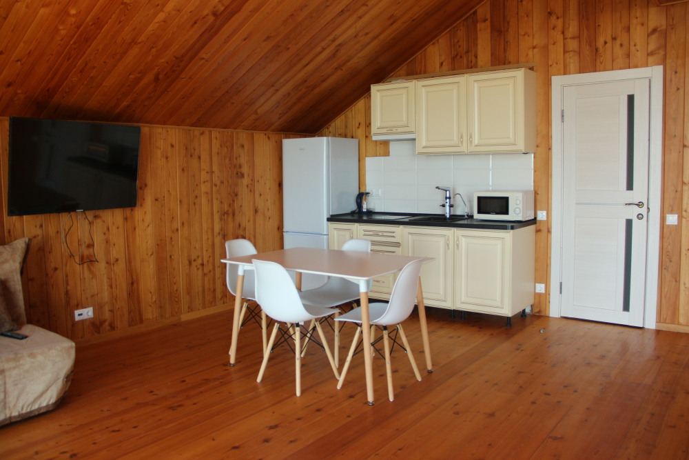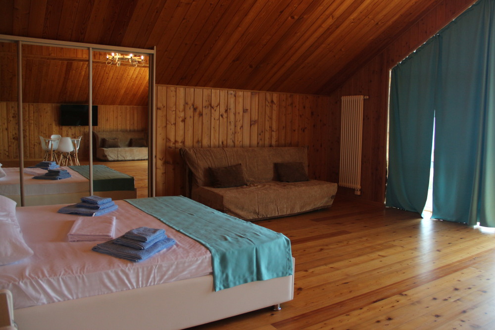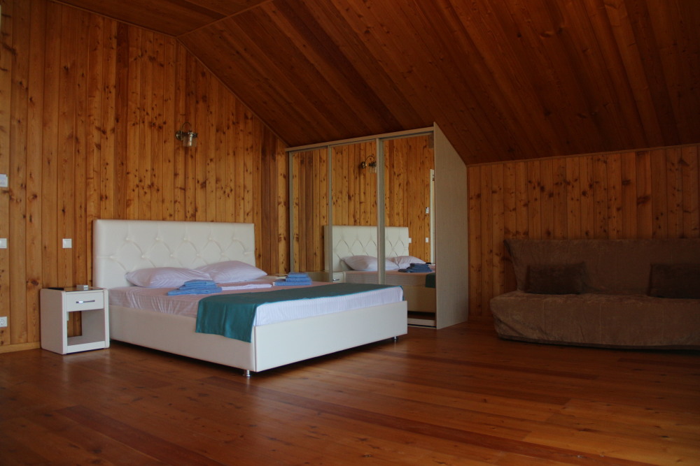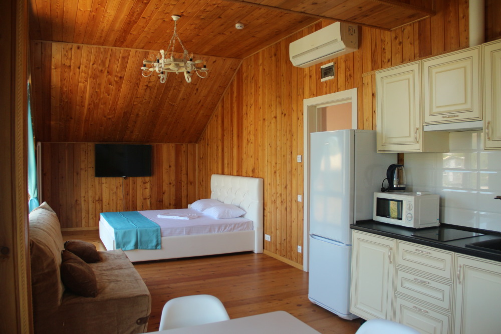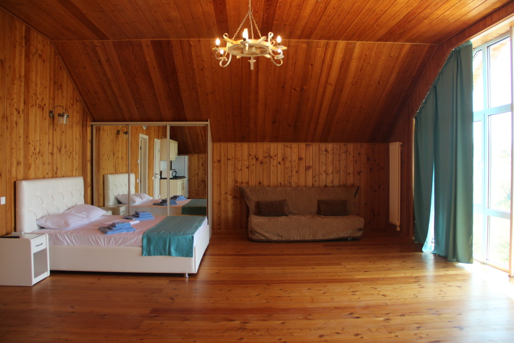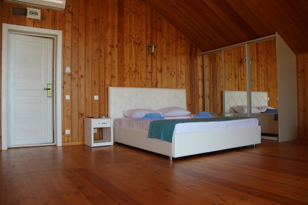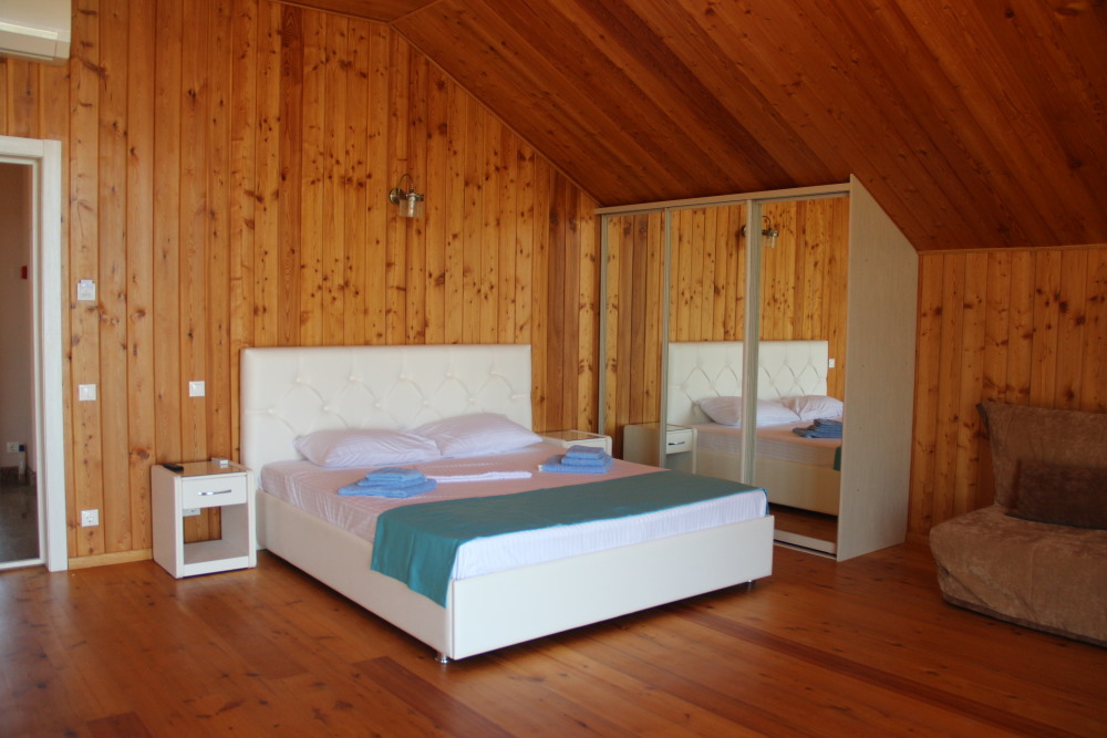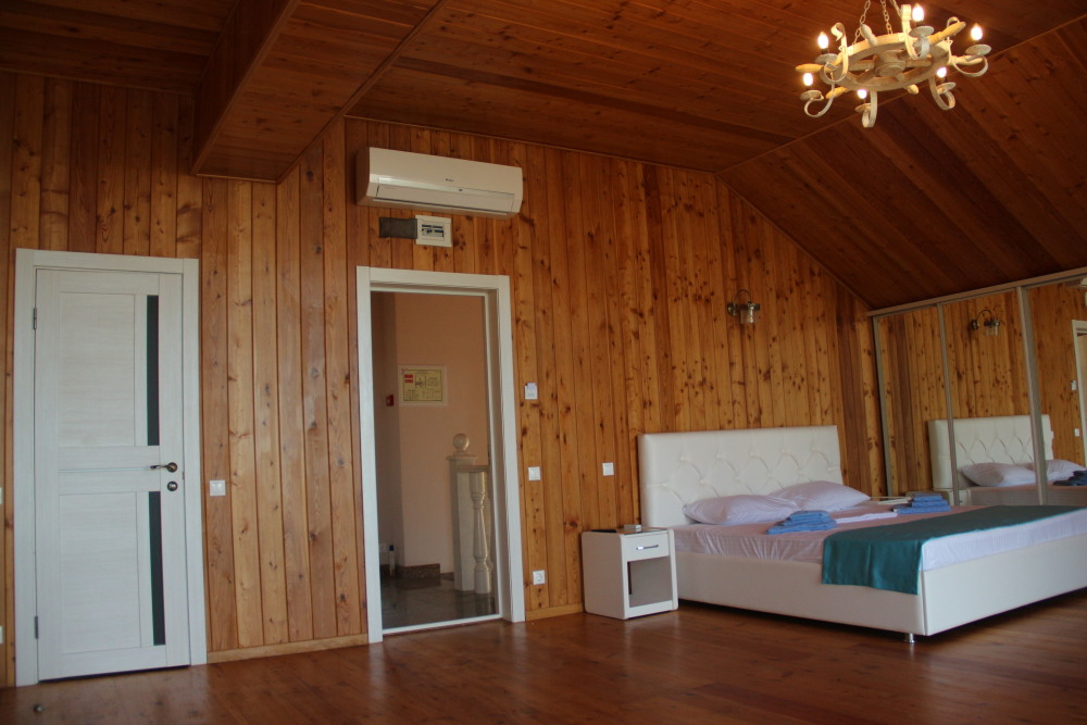 Откройте для себя редкую гармонию природы и роскоши в нашем эксклюзивном люксе, украшенном сибирской лиственницей. Волшебство натурального дерева и уникальный вид на потухший вулкан Кара-Даг обеспечивают идеальный фон для вашего отдыха.