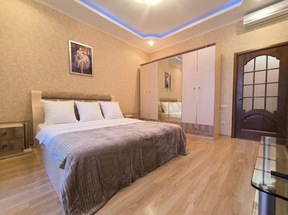 - спальные места (2+2+1): двуспальная кровать 180х200 с ортопедическим матрасом, диван 160х180, евро раскладушка.