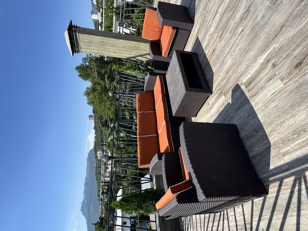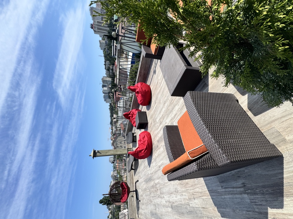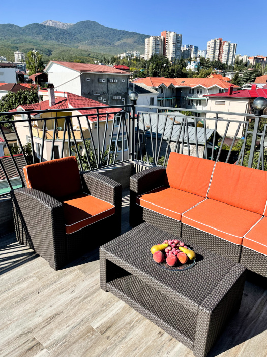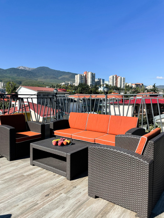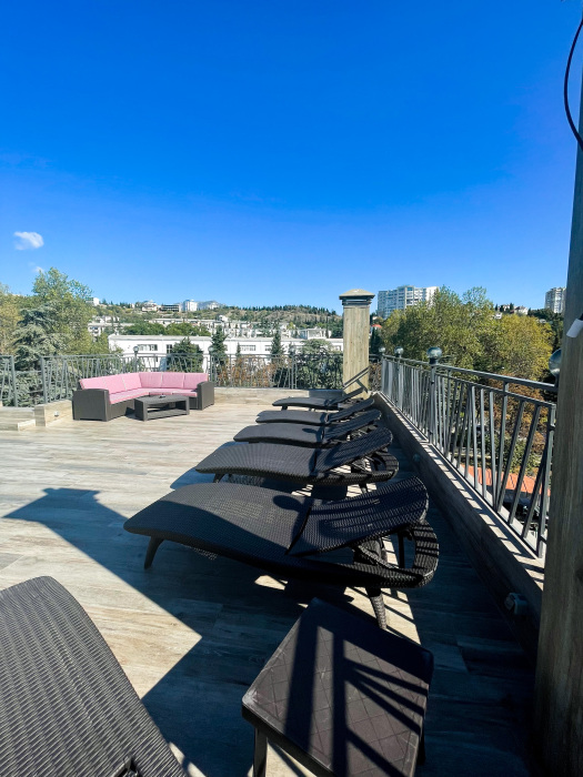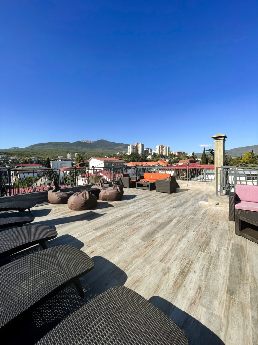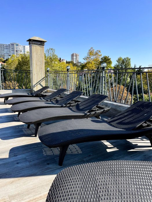 Также есть видовая лаунж-зона с шезлонгами для загара и мебелью для отдыха.