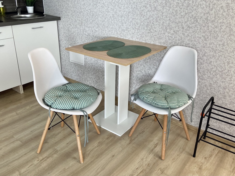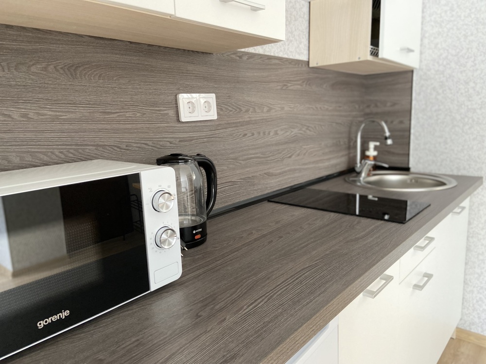 Студия рассчитана на проживание 2-х человек, но есть возможность установки доп. спального места (раскладушка) - 200 руб. сутки.