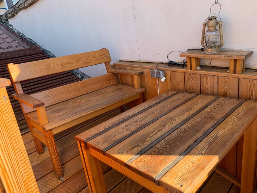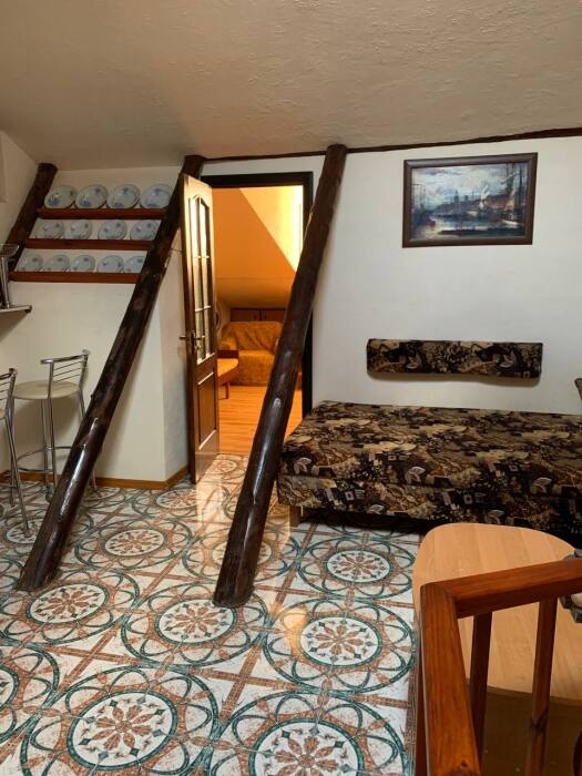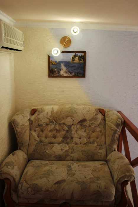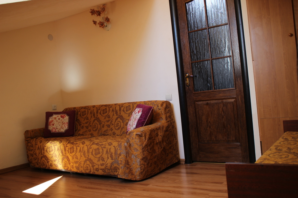 Возможен отдых двумя небольшими семьями с маленькими детьми (четыре больших и два маленьких дивана).