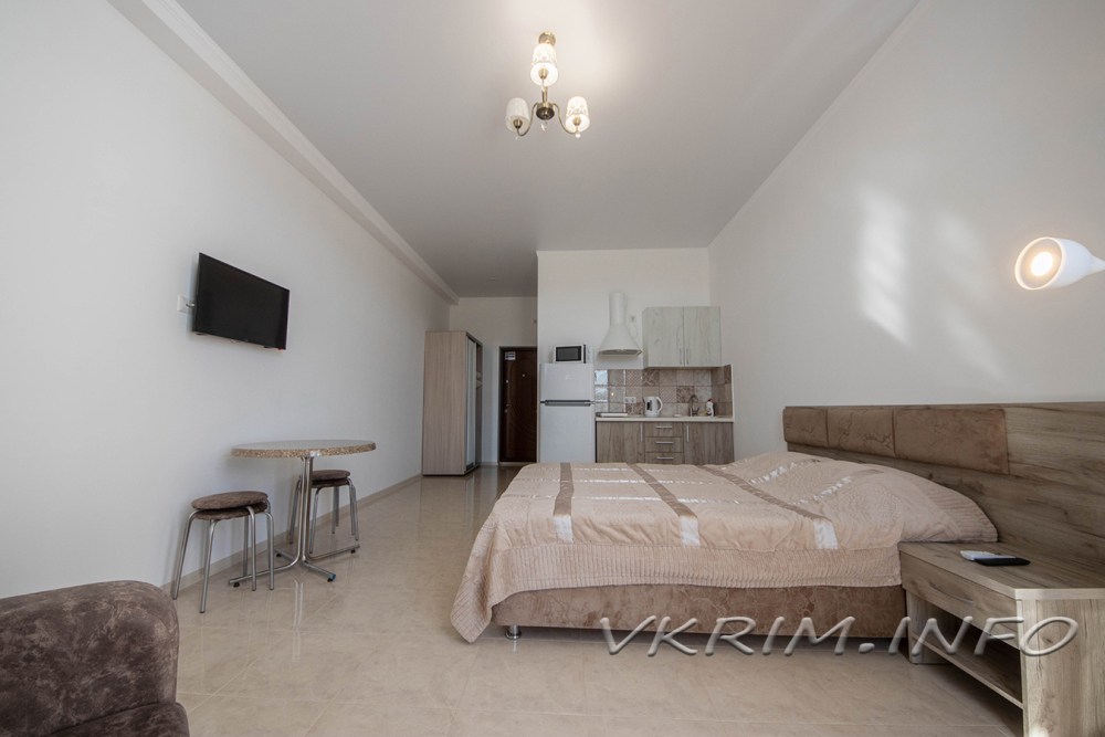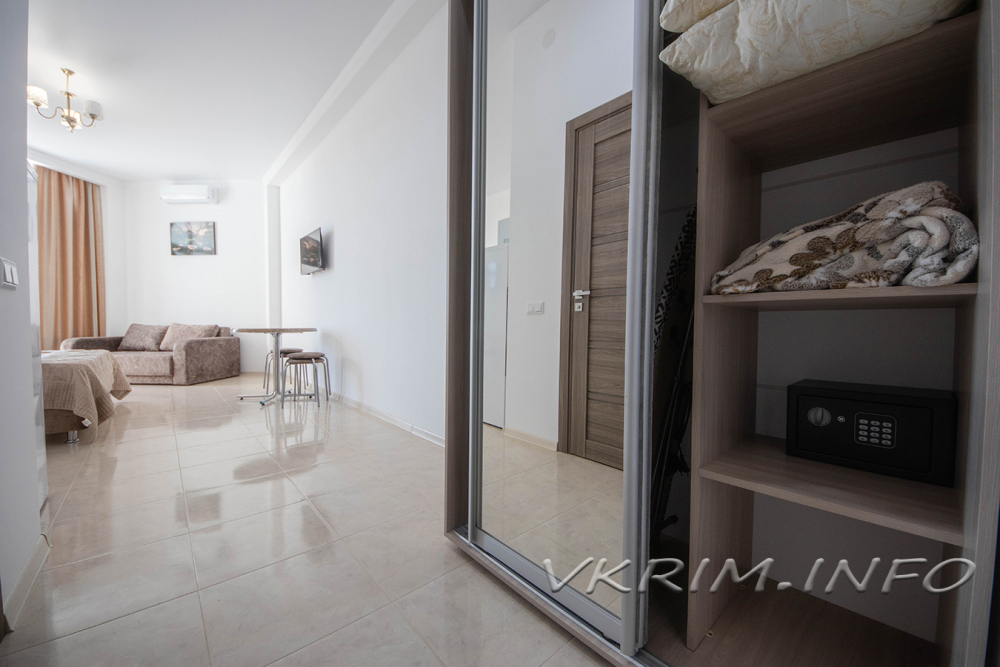 Для комфортного отдыха в Феодосии предлагается в новом элитном комплексе Черноморская набережная, уютная квартира-студия с красивым видом на Феодосийский залив.