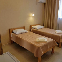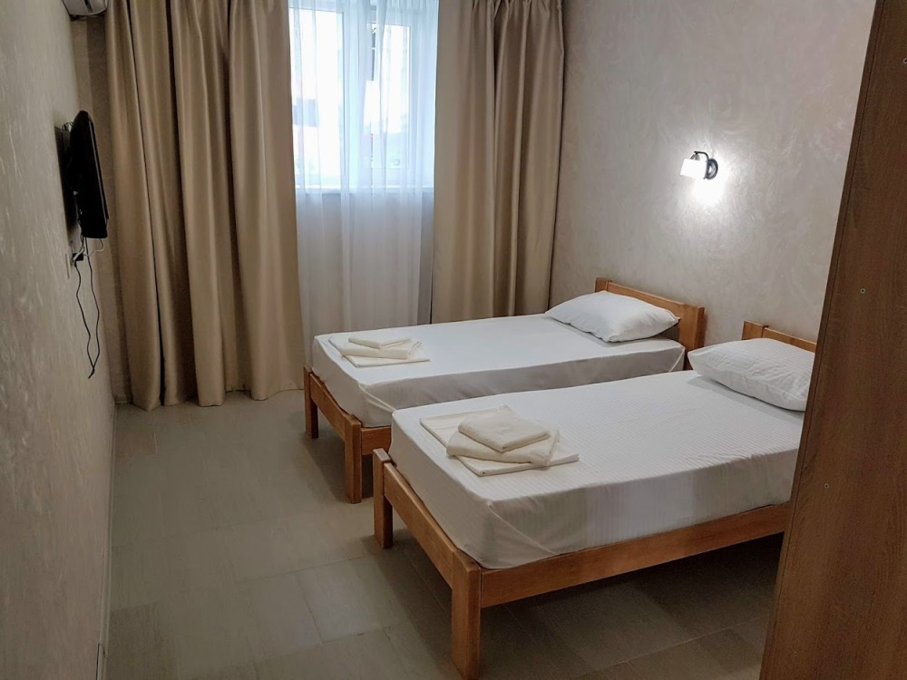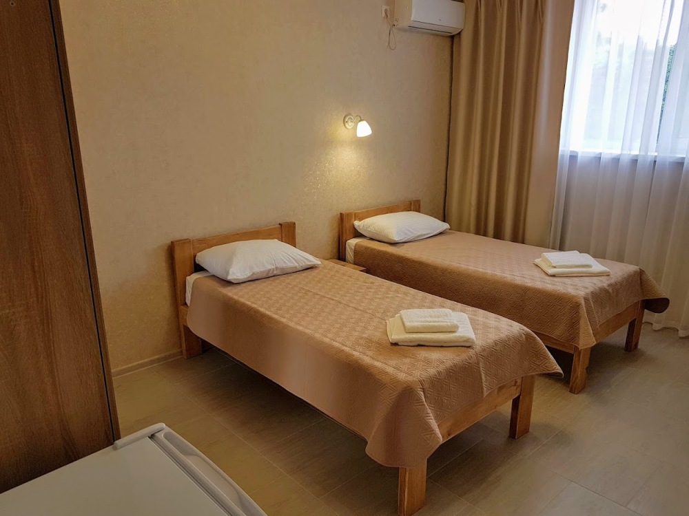 Стандартный двухместный номер оборудован двумя раздельными кроватями с качественными ортопедическими матрацами. В номере есть кондиционер, телевизор, холодильник, шкаф для одежды, скоростной Wi-Fi.