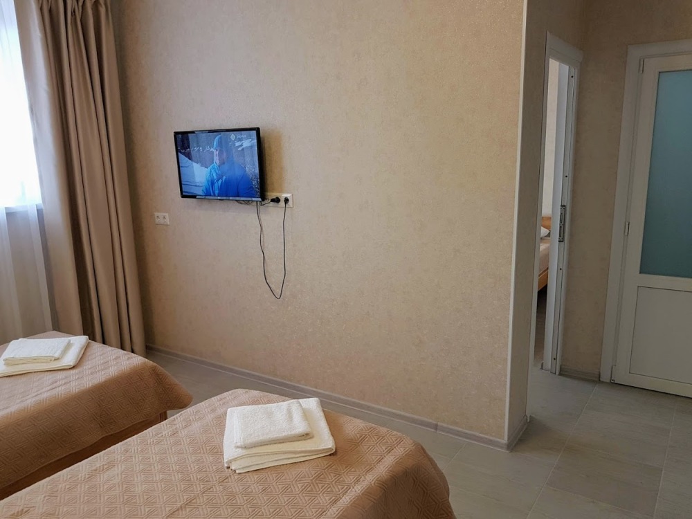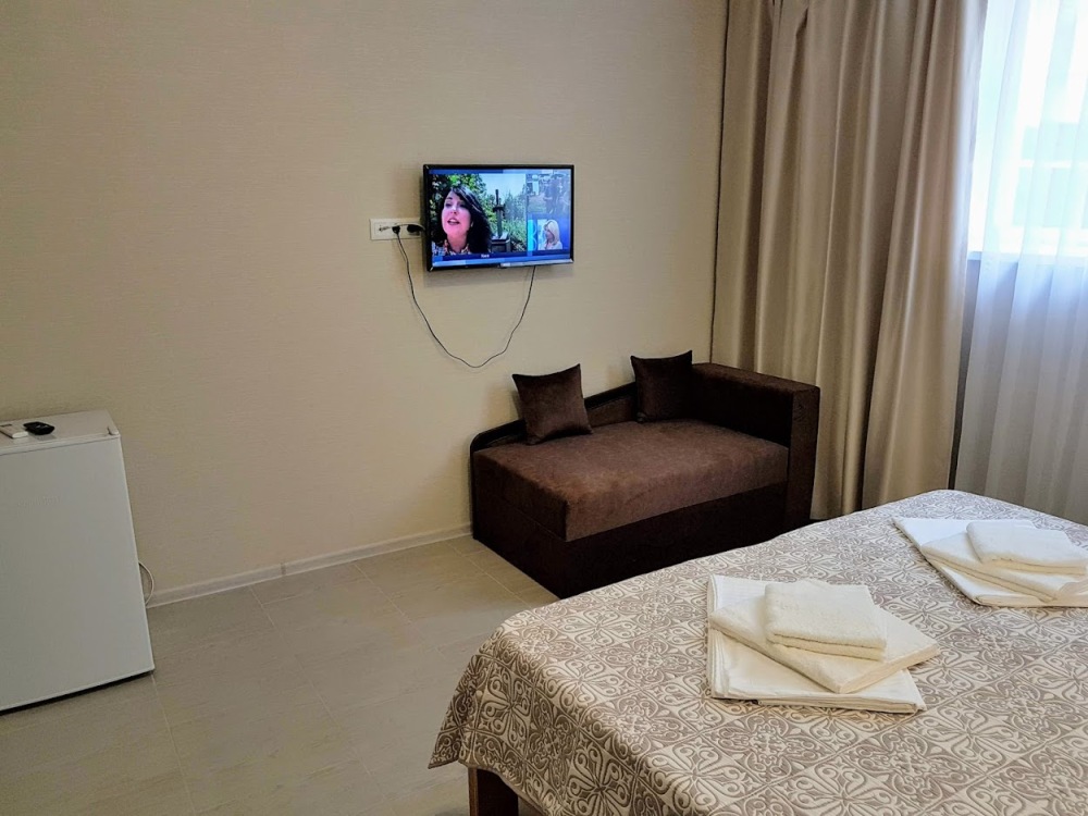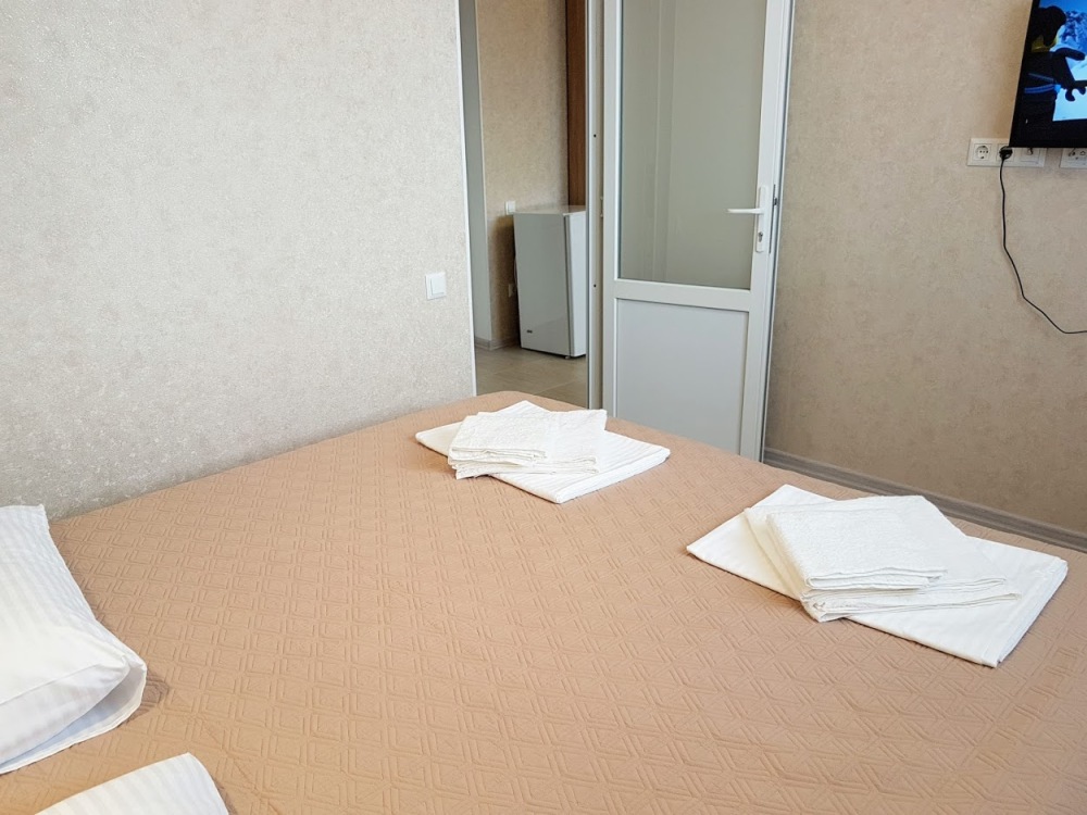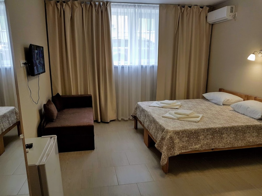 Стандартный трехместный номер оборудован двумя раздельными кроватями с качественными ортопедическими матрацами и удобным раскладным диваном. В номере есть кондиционер, телевизор, холодильник, шкаф для одежды, скоростной Wi-Fi.