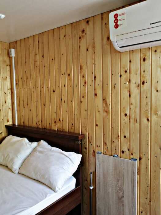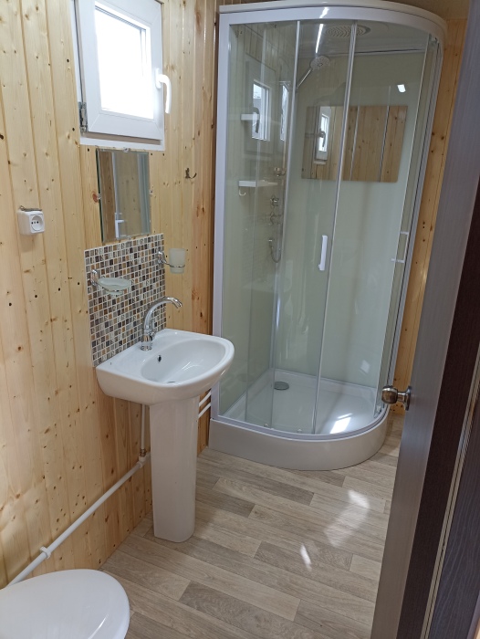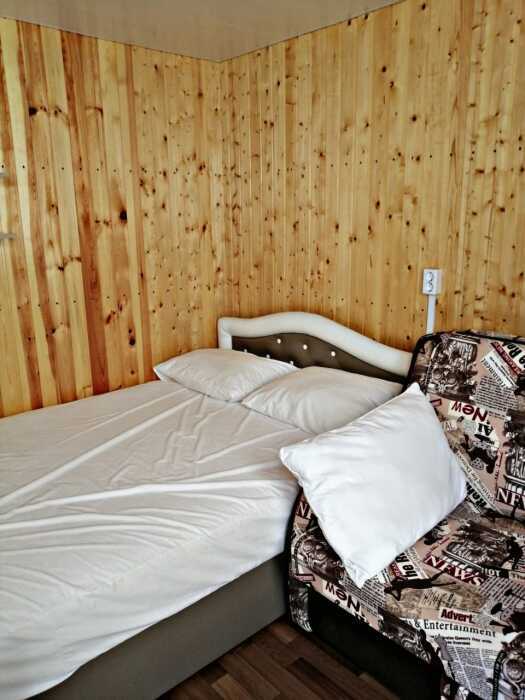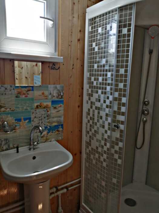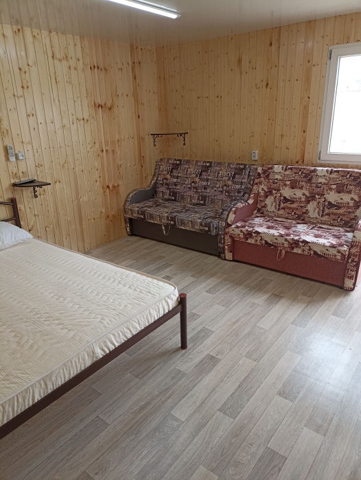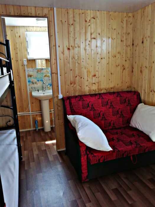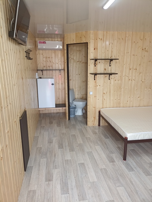 Новая кухня оборудована всем необходимым для самостоятельного приготовления. Небольшие домики, но оборудованы всем необходимым. Душ, туалет, умывальник, холодильник, телевизор, кондиционер, WI-FI. Новые домики свежей постройки 2021 года. Всё новое оборудование. Мангал на территории.