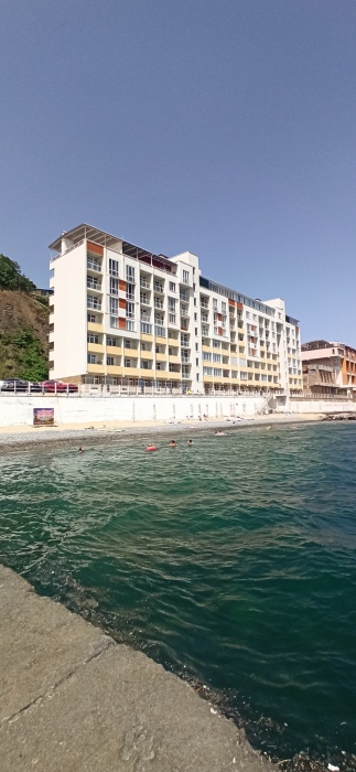 Апартамент расположен на 2 этаже нового ЖК «Отрадный Берег», состоит из большой и светлой студии разделенной на кухонную зону и зону отдыха, закрытый балкон с панорамным видом на море и город, прихожей с встроенным шкаф-купе, в санузле установлена угловая ванна, что так же является преимуществом.