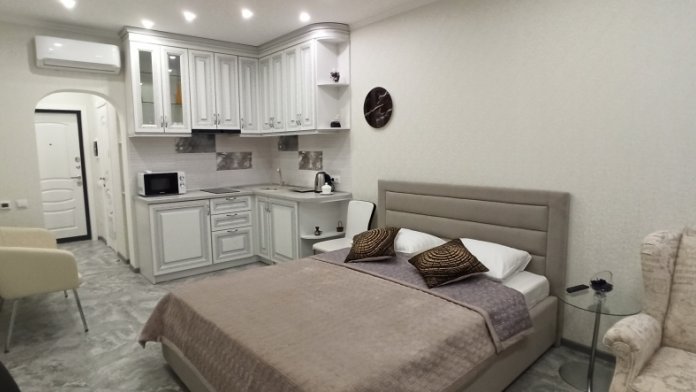 Сдаются апартаменты от собственника - площадью 24 кв.м. на первой линии от моря с новым дизайнерским ремонтом из качественных материалов и дорогой мебели.