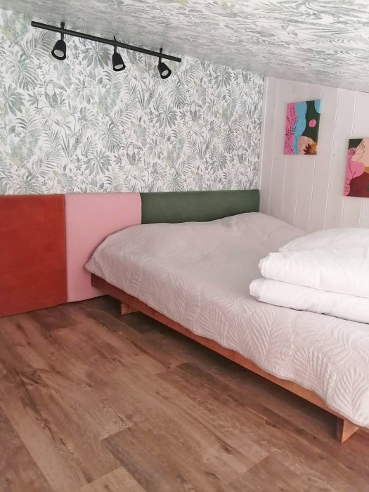 Номер наполнен декоративными деталями, создающими уютное творческое пространство.