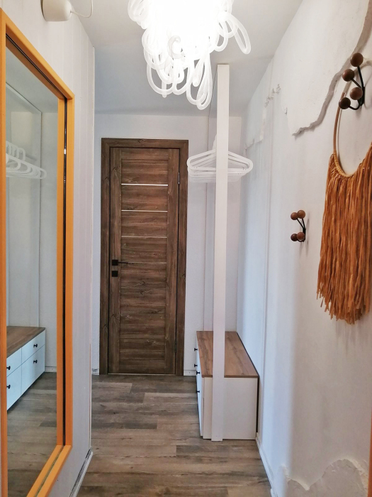 Небольшой по площади, но функционально зонированный ,будет удобен для 3-х человек,максимальное количество 4 человека.(2 взрослых и 2 ребенка)
