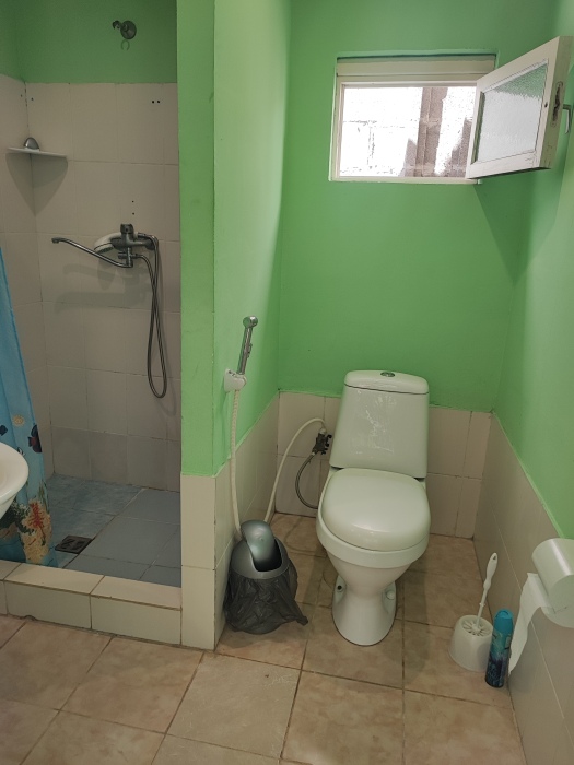 На втором этаже находится комната с двухспальной и односпальной кроватями, кондиционером, совмещенным туалетом и душем.