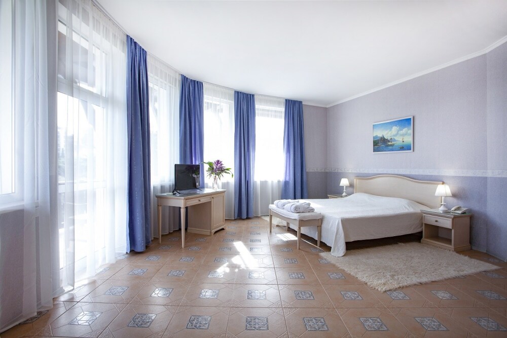 Гостевой дом расположен в парковой зоне города Ялта. На территории обустроен прекрасный сад, в котором каждый найдет укромный уголок по своему вкусу. В стоимость включено посещение открытого бассейна, спортивного зала и услуги парковки.