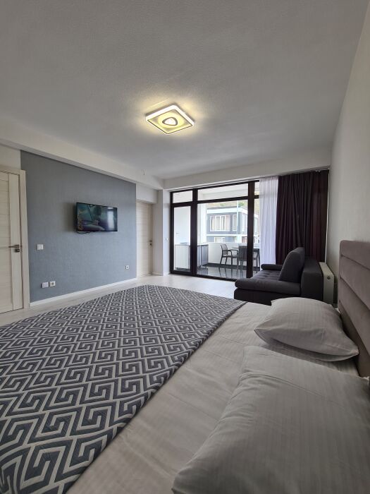 В номере также есть телевизор с плоским экраном,WI-Fi, кондиционер, шкаф, холодильник.