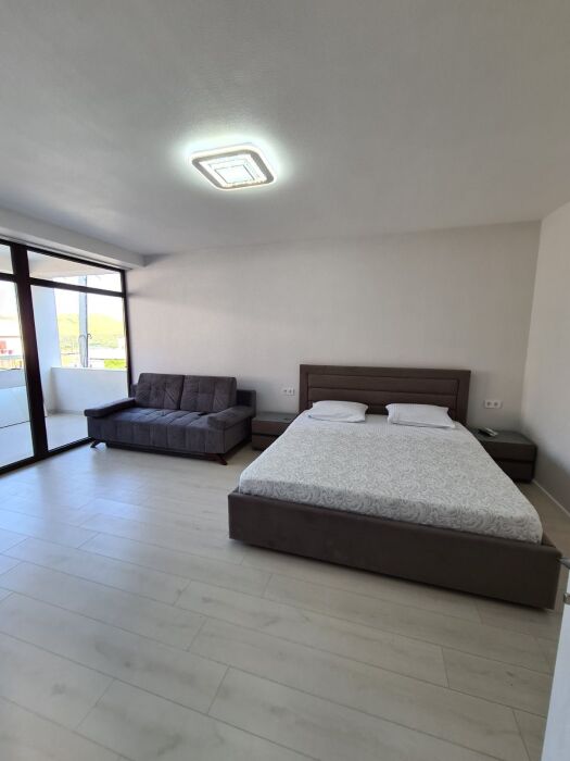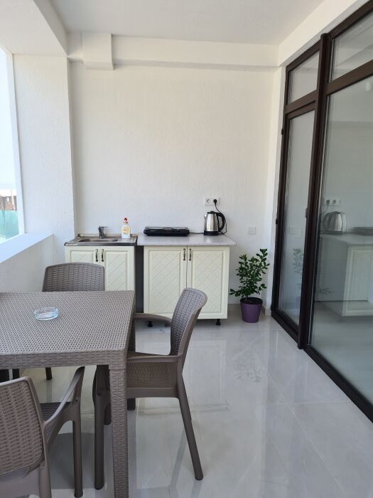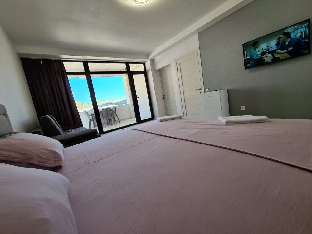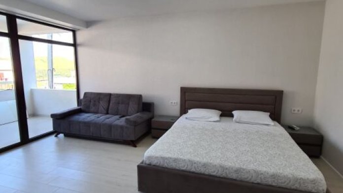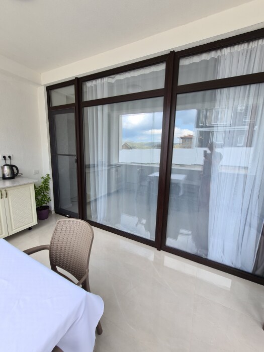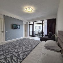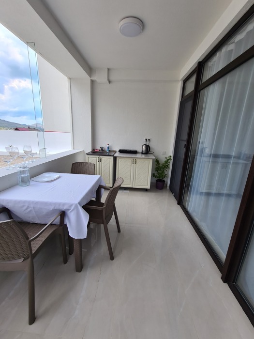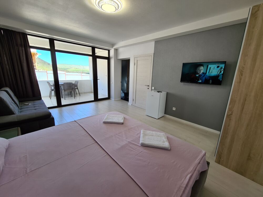Мы предлагаем для Вас семейные номера со всеми удобствами, большой террасой и своей мини-кухней. В комнате стоит большая кровать «king size» 180х200 и раскладной диван 140х200.