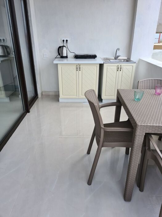 Идеально для семейной пары с одним или двумя детьми. Мини-кухня оборудована всем необходимым, включая посуду.