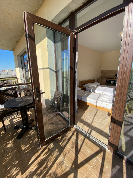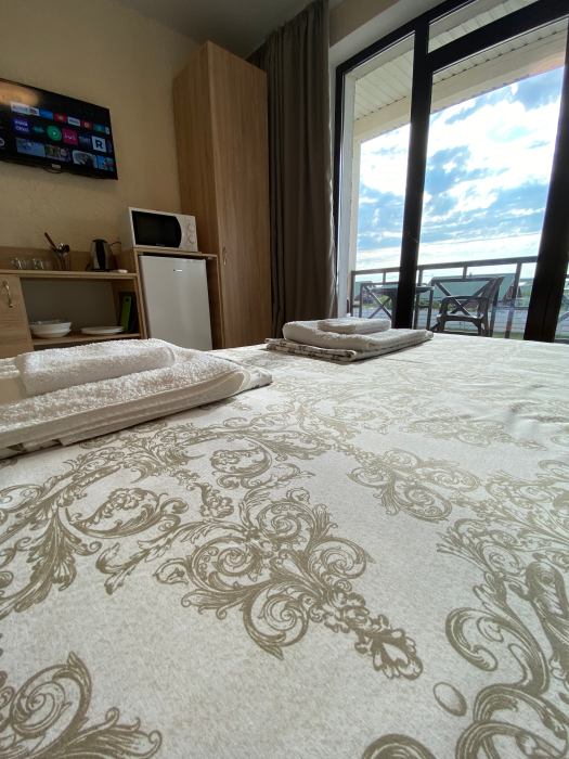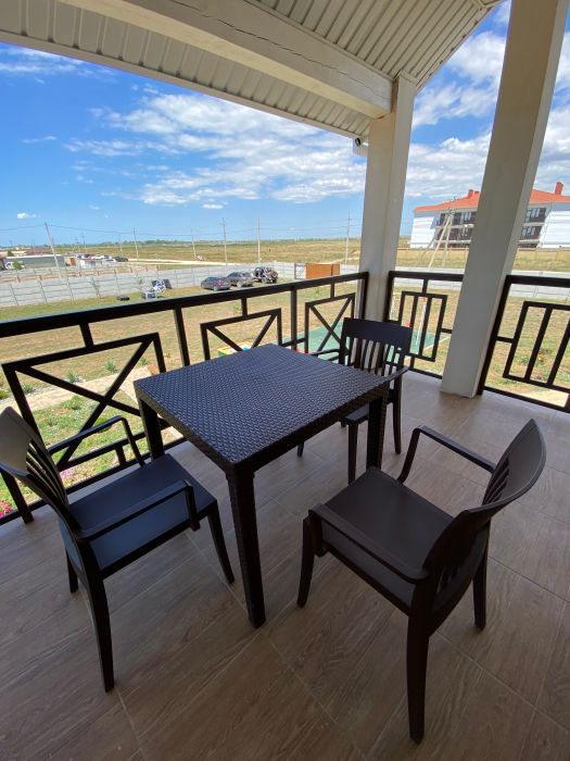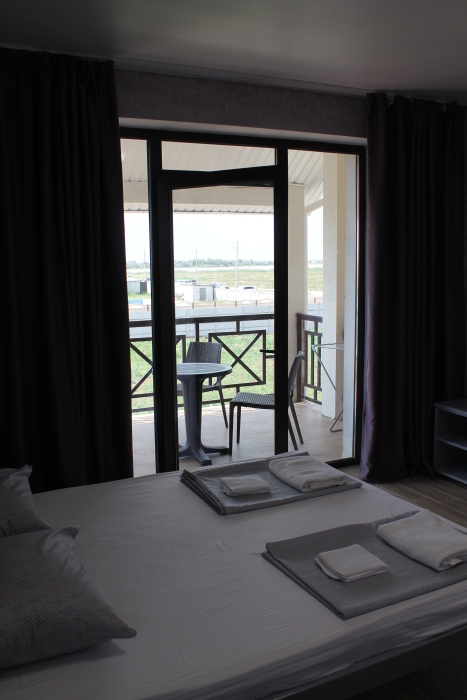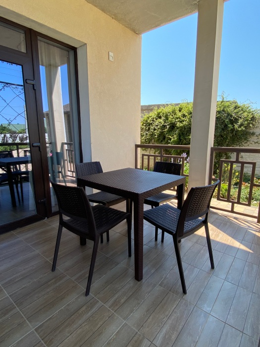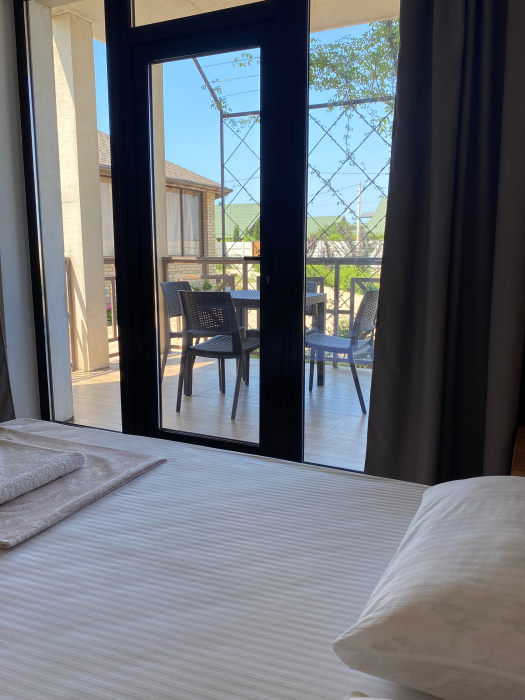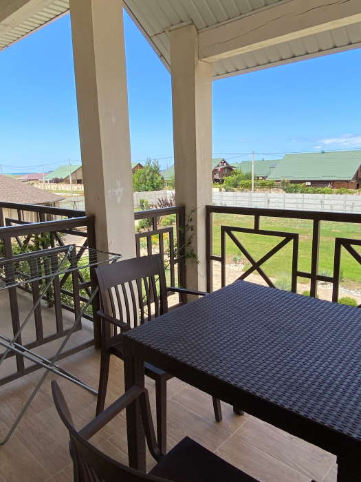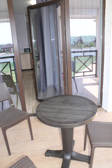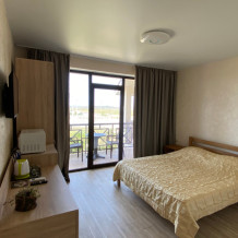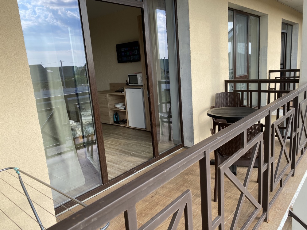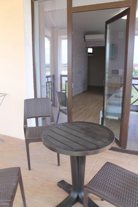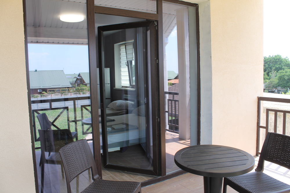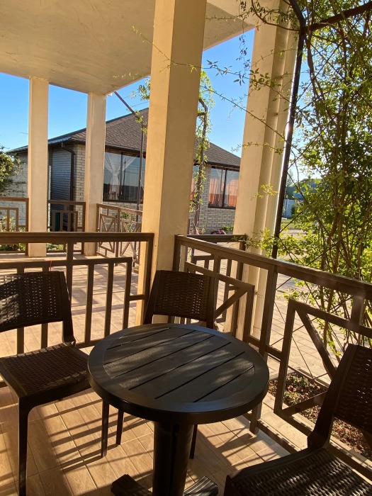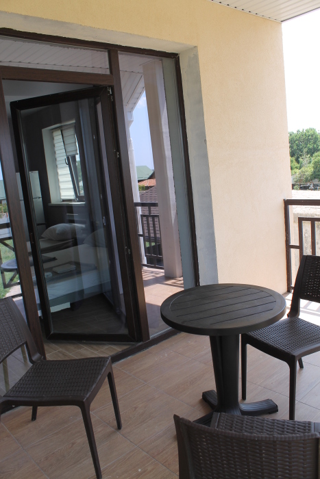 Все номера имеют уютную террасу, оборудованную креслами и столиками, где на свежем воздухе можно приятно провести утреннее либо вечернее время. С балконов номеров второго этажа открывается частичный вид на море.