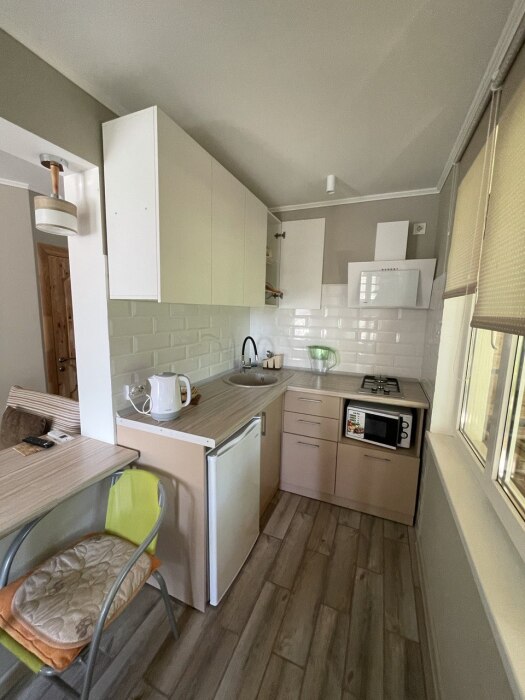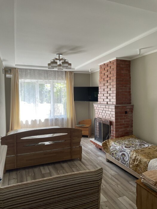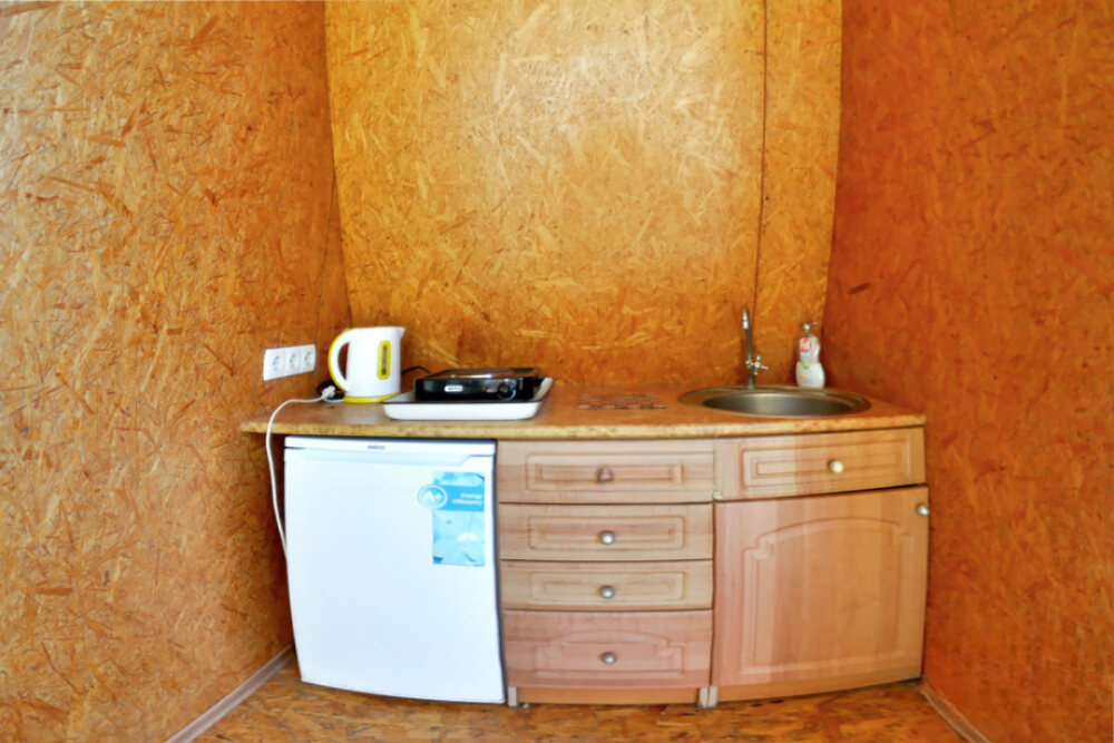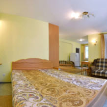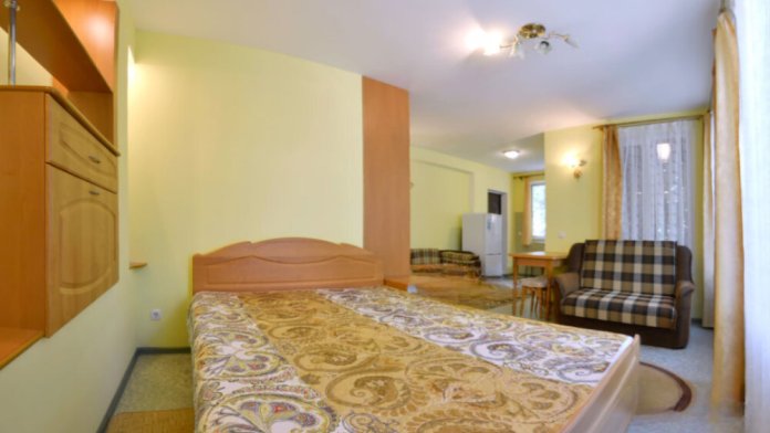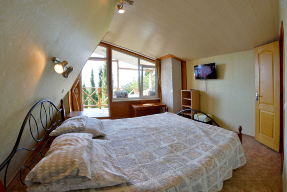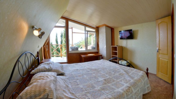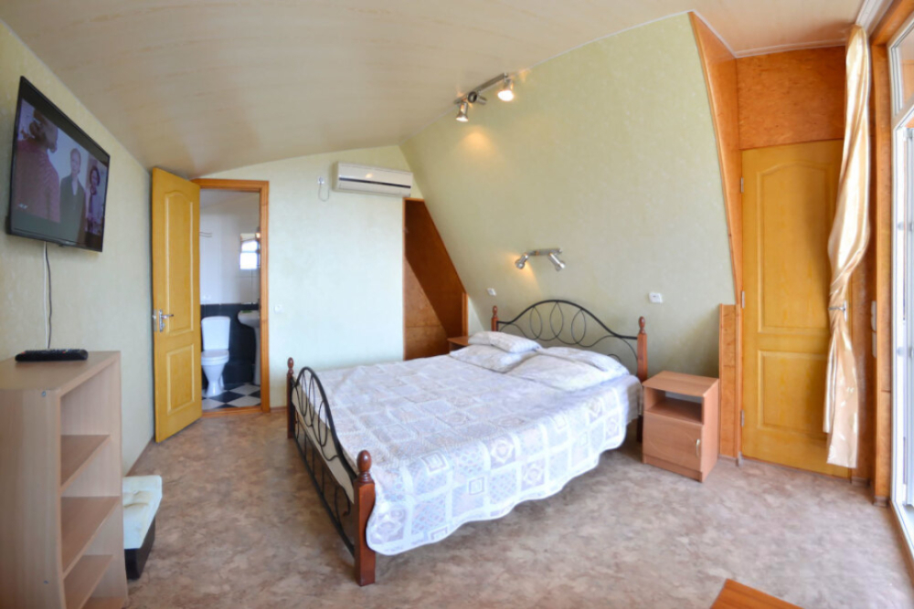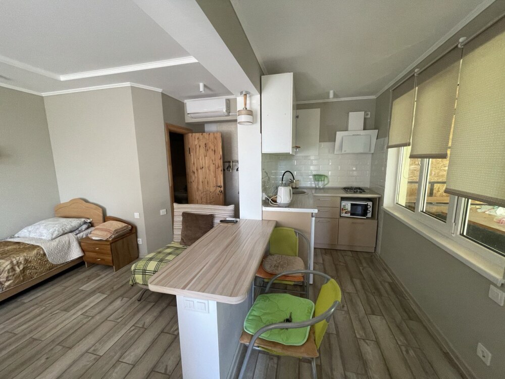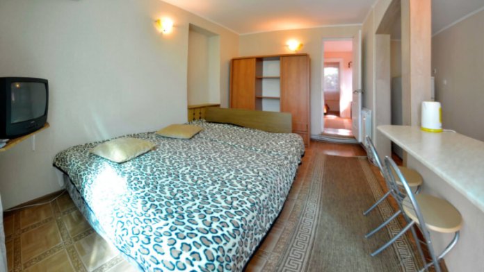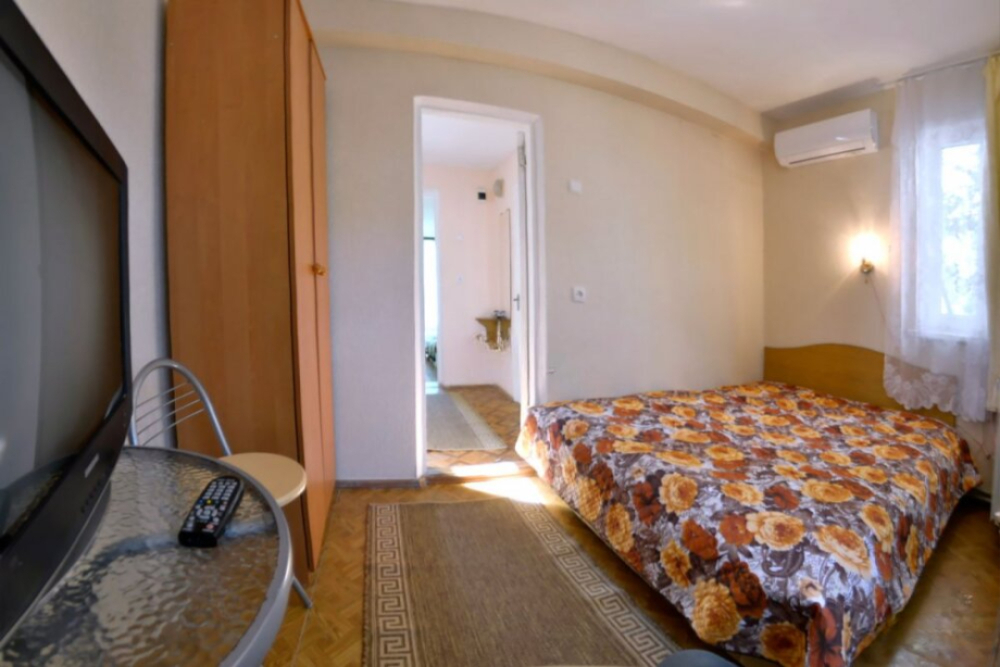 В номере есть все необходимое для курортного отдыха. Возле номера крытая Терраса с кухней и обеденной зоной. Окна выходят в сад. Прохладно и зелено.