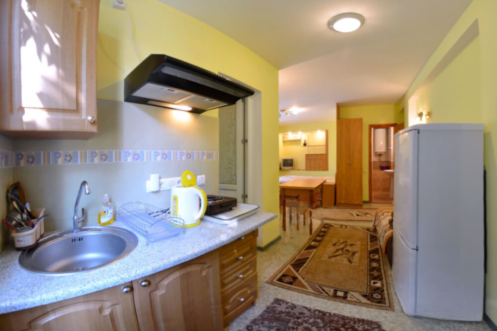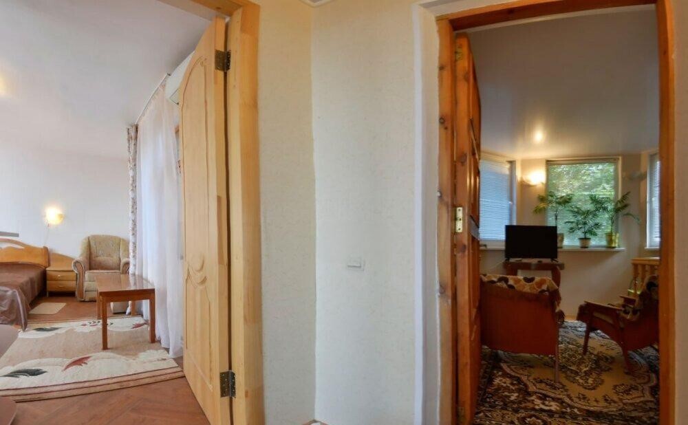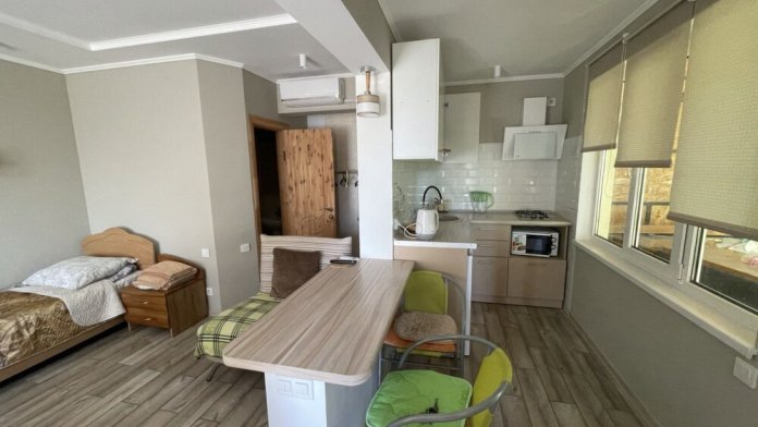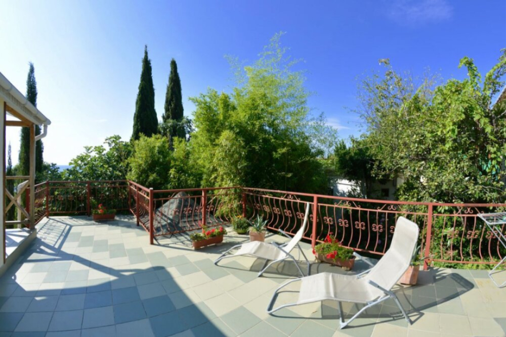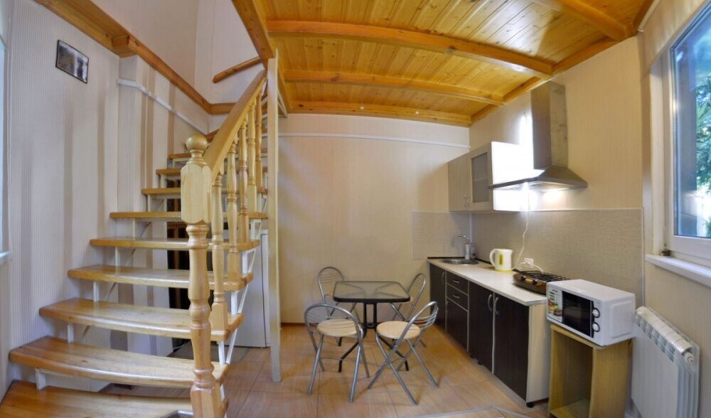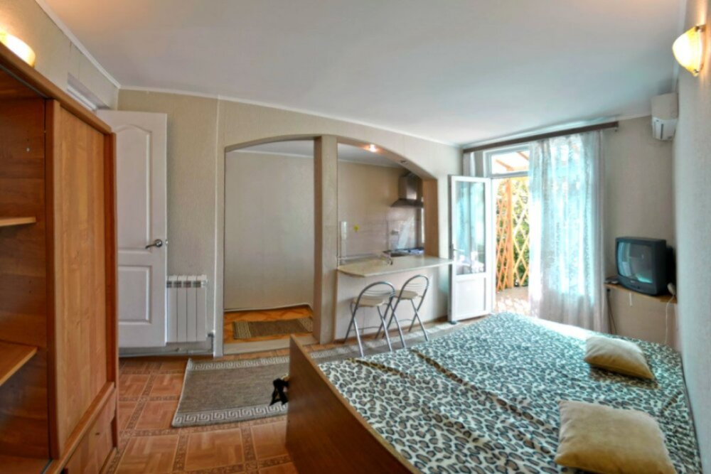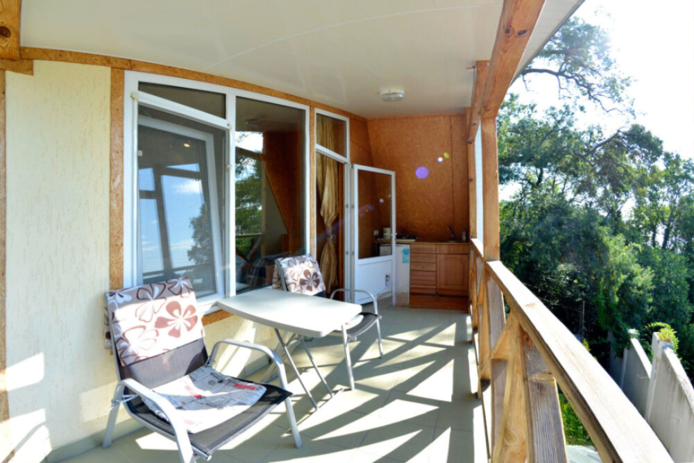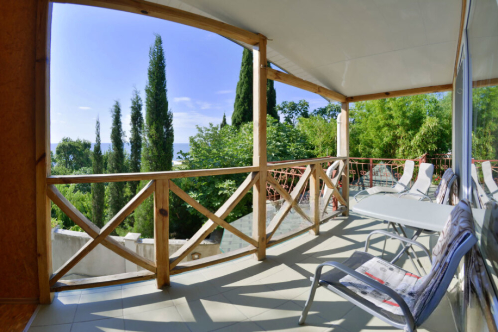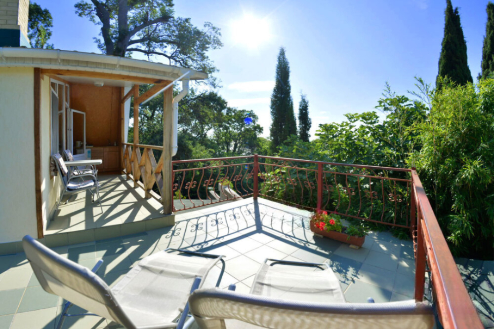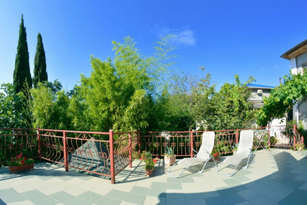 Частное домовладение со своим закрытым и утопающим в зелени двором. На территории - несколько номеров квартирного типа со своими отдельными входами и террасам для отдыха на воздухе. У каждого номера есть своя часть двора со столиком и стульями. Общая видовая терраса с шезлонгами и возможностью позагорать. Есть мангал, но пользование по договоренности с владельцами.