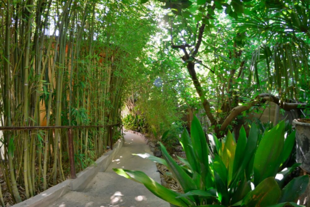 У выхода из номера среди зелени своя терраса с качелей и столиком.