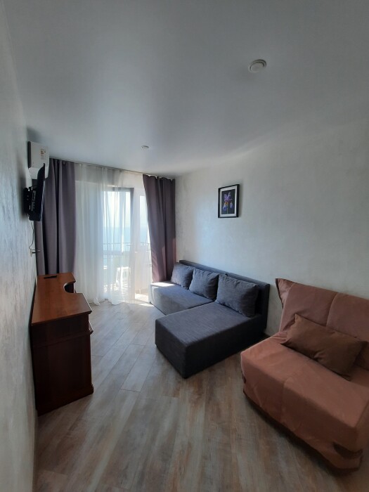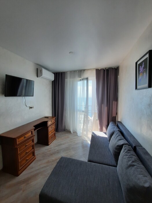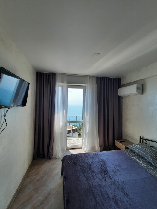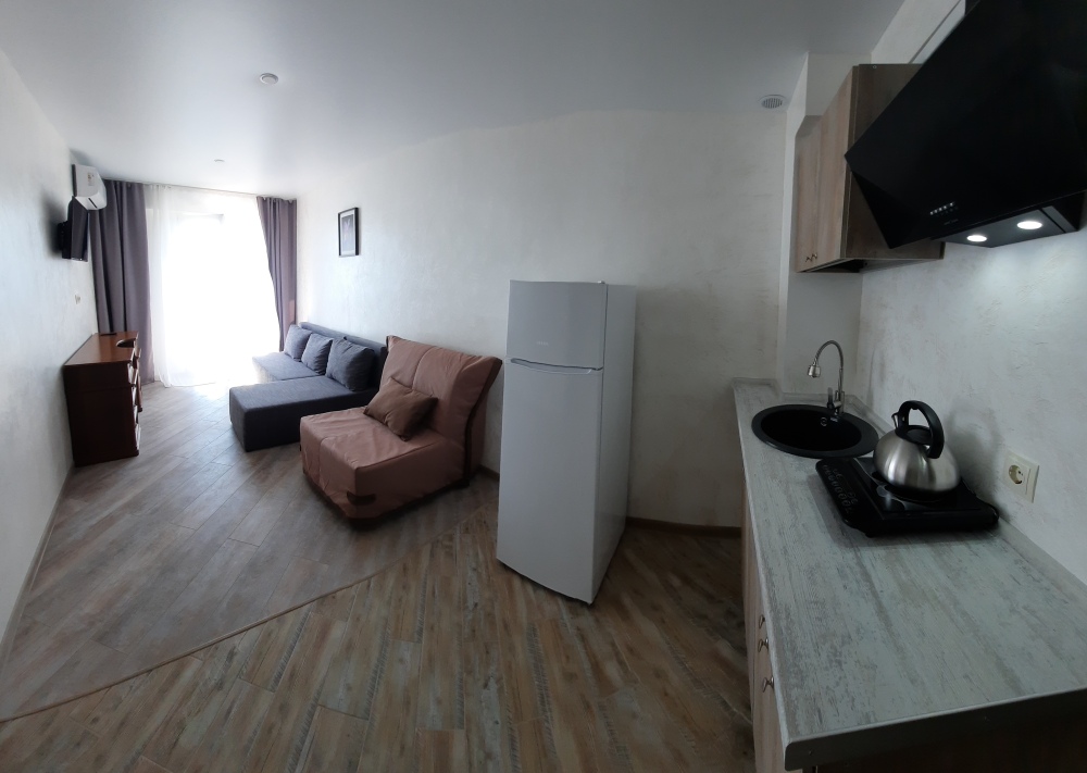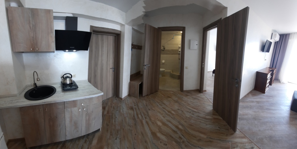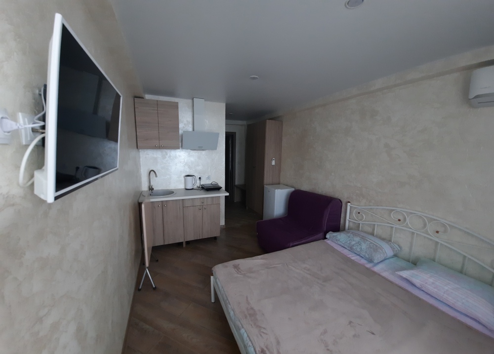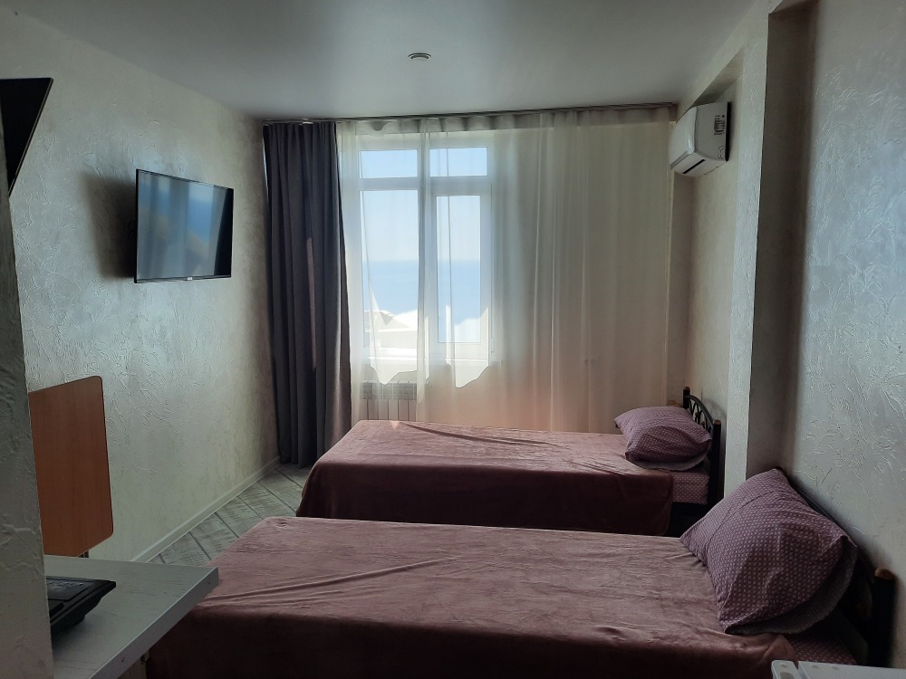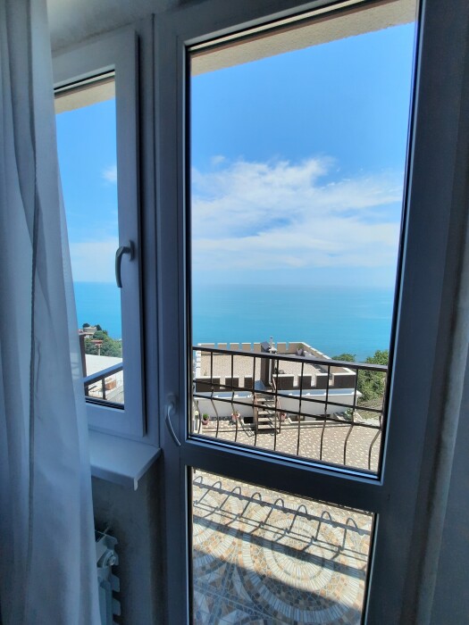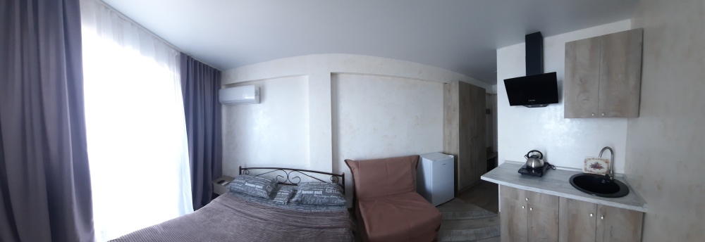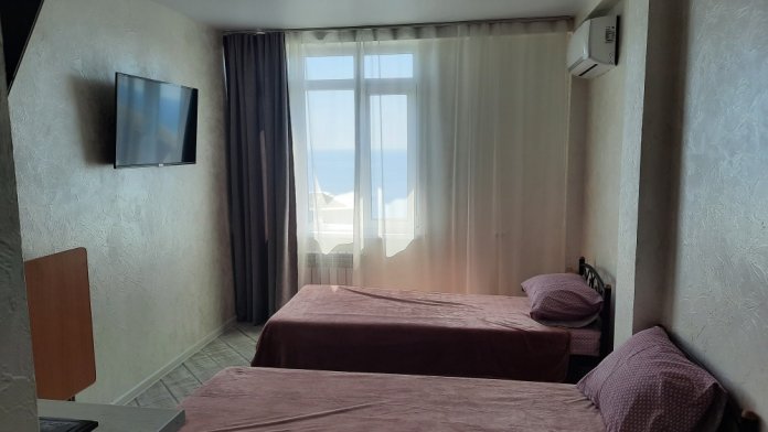 В комнате от 1 до 5 спальных мест. Кухня в каждой комнате (плита, микроволновка, вытяжка, посуда). Комнаты с видом на море.