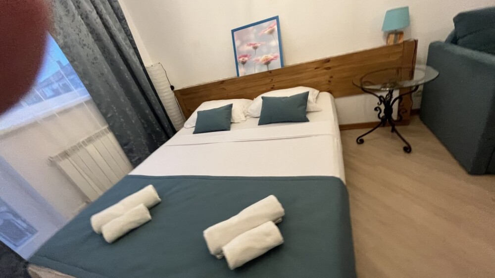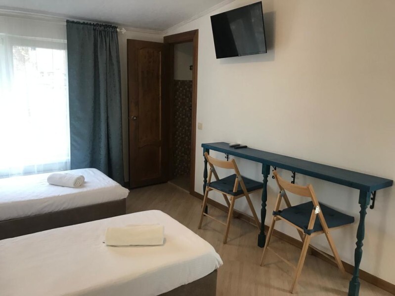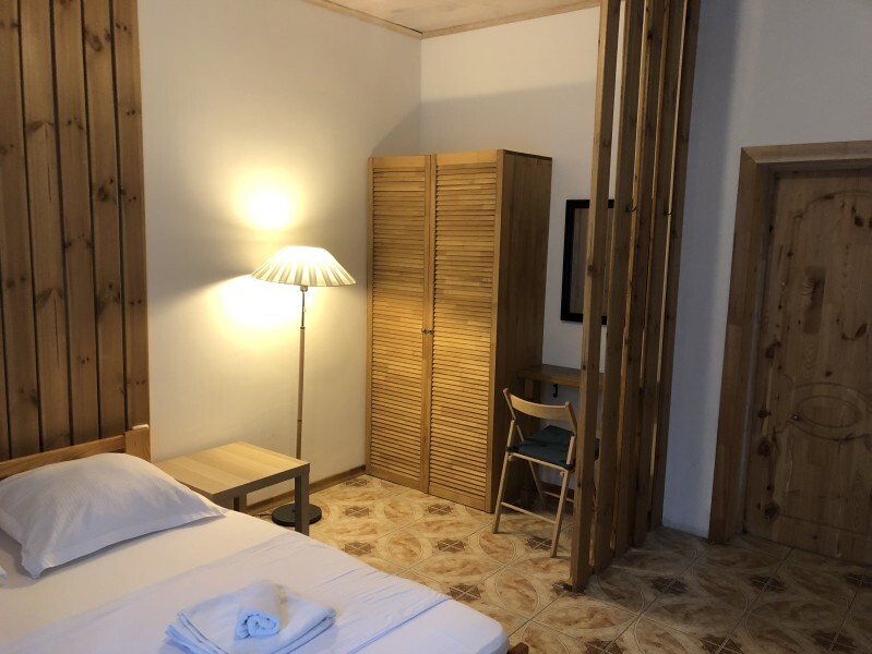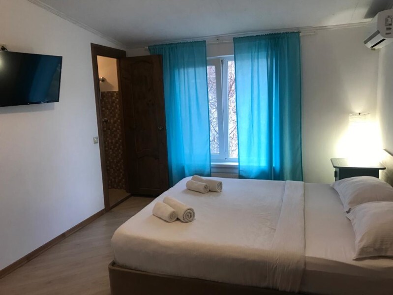 Номер с двухспальной кроватью. В номере свой санузел, смарт тв, кондиционер. Окно выходит в коридор.