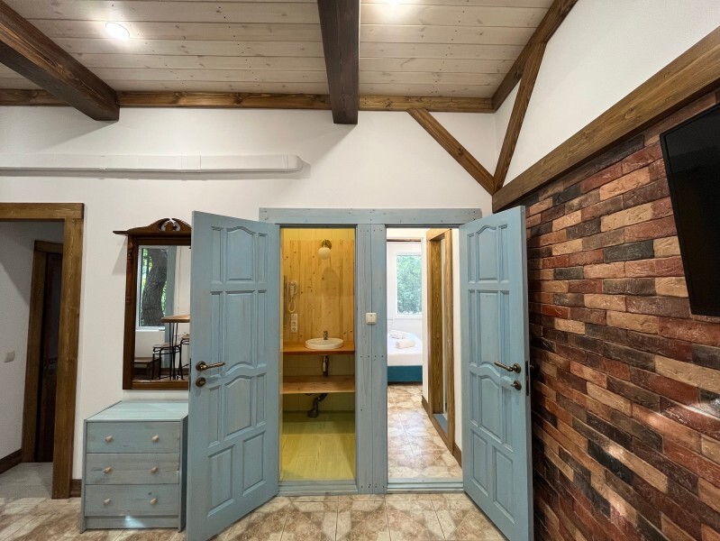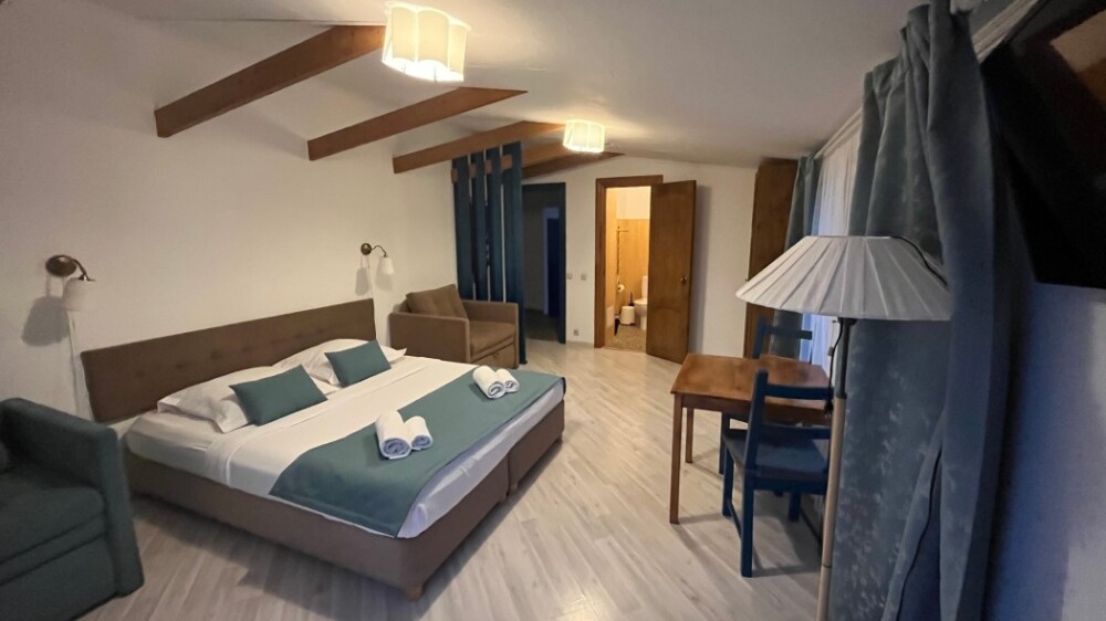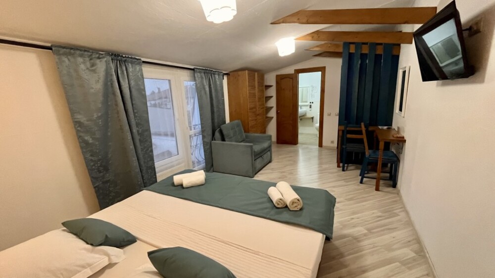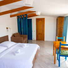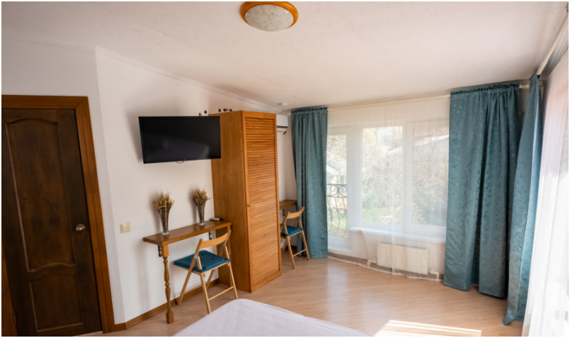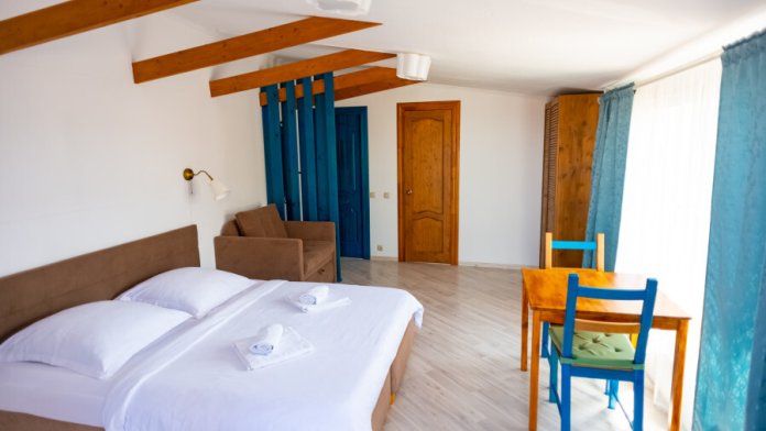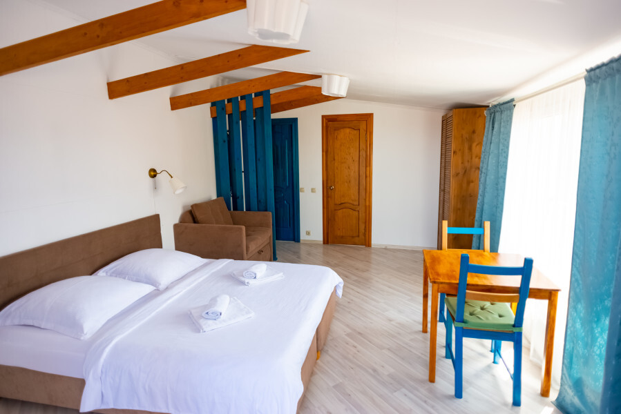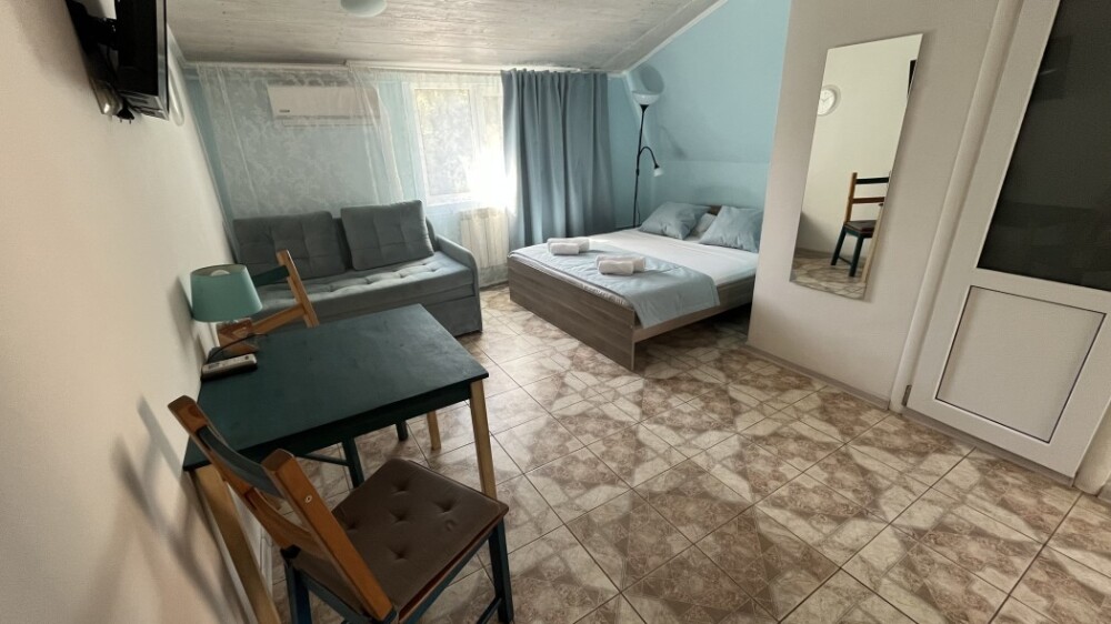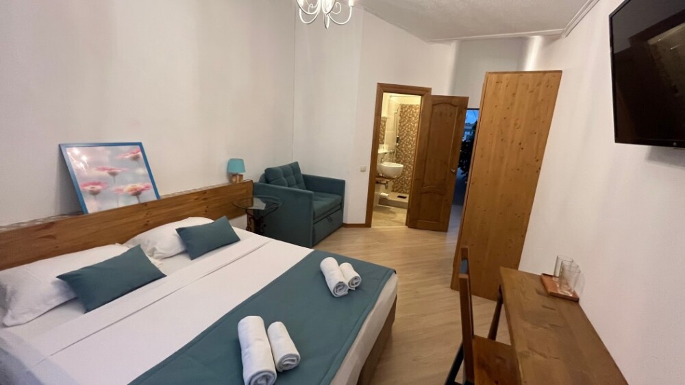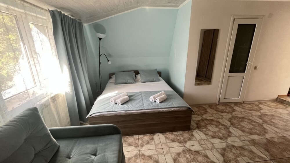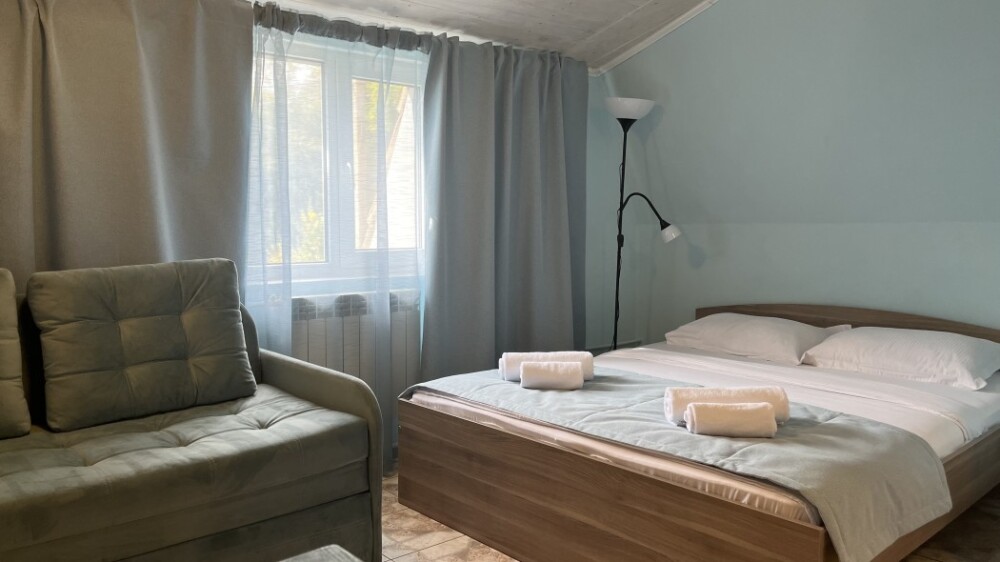 Номер класса улучшенный стандарт с большой двухспальной кроватью,ортопедическим матрасом и двухместным диваном. В номере - душ с туалетом, LED телевизор с доступом в интернет, фен, кондиционер, сейф.