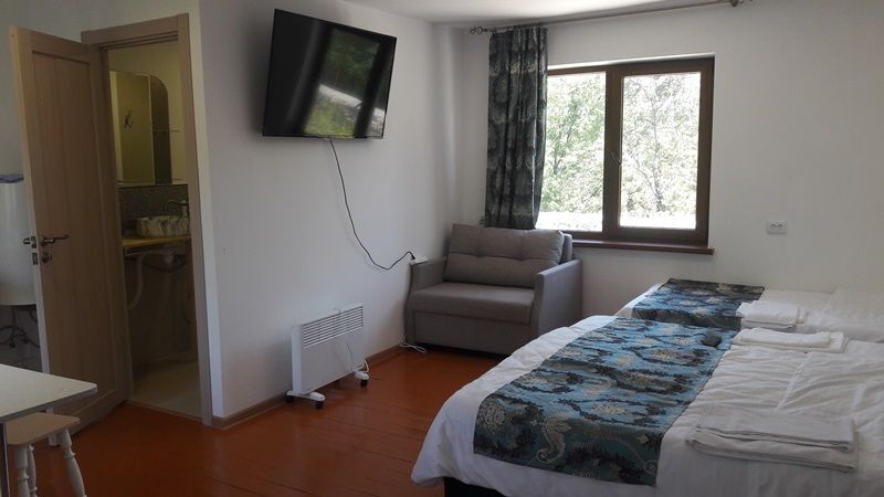 Предлагаются для отдыха 2 номера - однокомнатный на 4 человека и двухкомнатный на 6 человек. Санузел в номере: душевая система, гигиенический душ. Имеется кондиционер. Мини-кухня в номере: микроволновка, мультиварка, электроплита, холодильник, чайник, посуда.