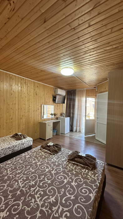 Уютно расположиться можно в домиках - однокомнатных или 2-комнатных на Ваш выбор.