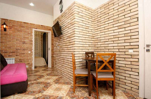 Квартиры с хорошим ремонтом, обставлены качественной изящной мебелью. Отдых в такой приятной, домашней обстановке способен подарить только положительные и приятные воспоминания. Кроме того, гости могут наслаждаться отдыхом на территории закрытого двора, оборудованного садовыми столиками и стульями.