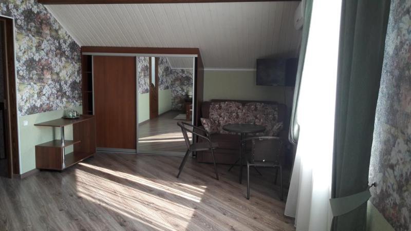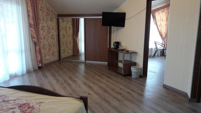 К Вашим услугам 6 комфортабельных номеров. На 1 этаже четыре номера: три 2-местных номера с выходами в холл и один 2-местный номер с отдельным выходом на веранду. На втором этаже один номер 2- комнатный люкс (возможно размещение до 5 гостей), в номере есть балкон с прекрасным видом на море и один номер - полулюкс 3-местный (возможно доп. место) с видом на море и горы. В каждом номере есть кондиционер, холодильник, телевизор с плоским экраном, чайник, шкаф, столик и тумбочки. Так же в каждом номере есть своя ванная комната.