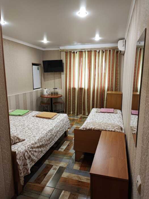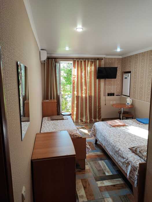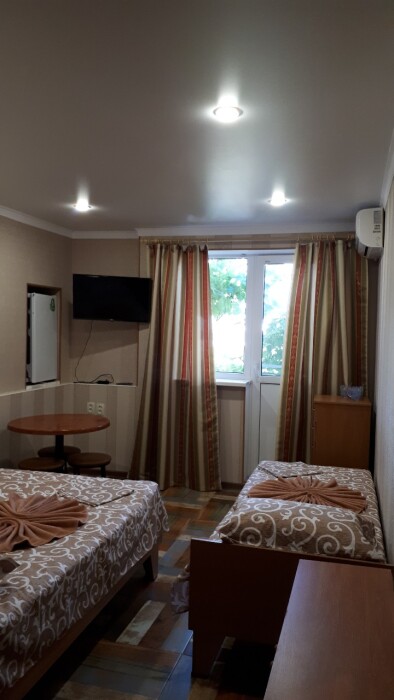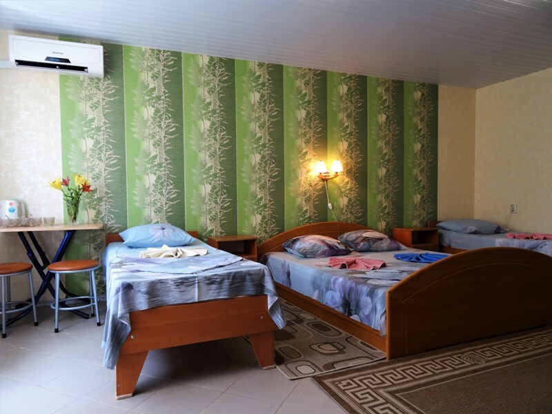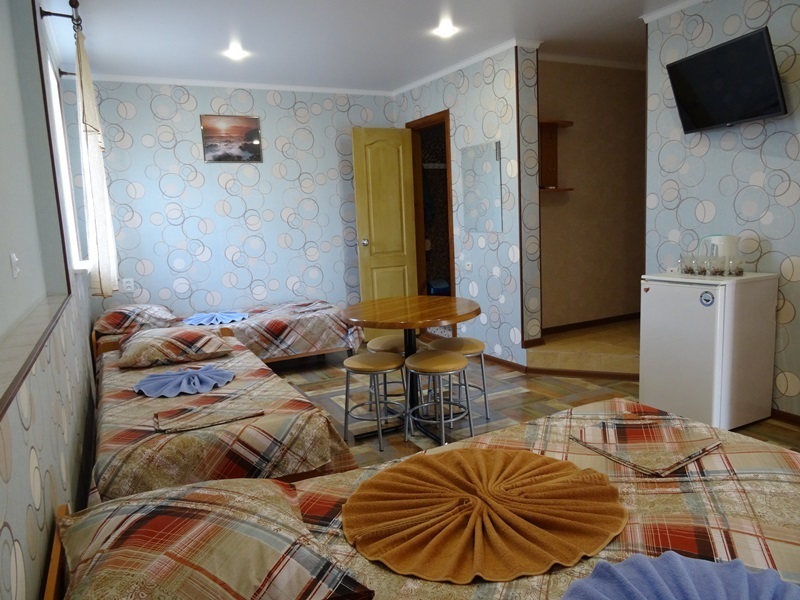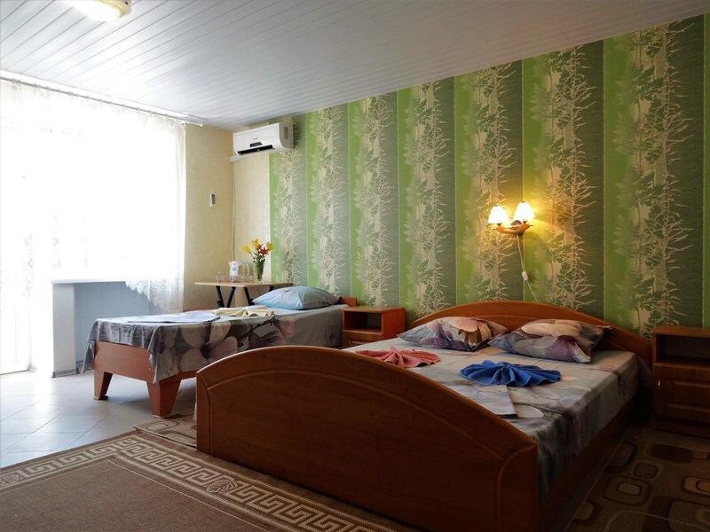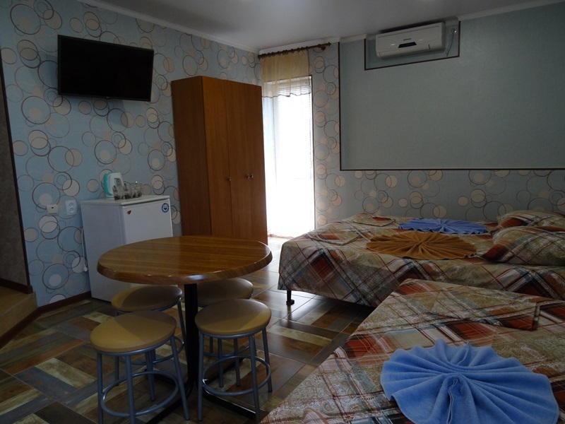 Все в гостевом доме 16 номеров различных категорий. Каждый номер оснащен всем необходимым: кроватью, телевизором, холодильником, шкафом, кондиционером, собственной ванной комнатой.