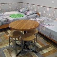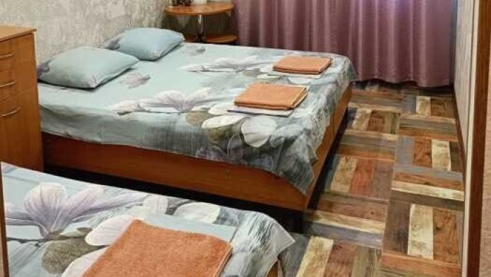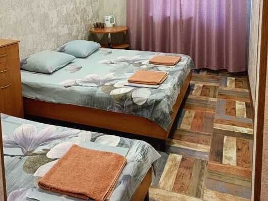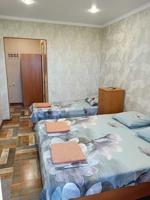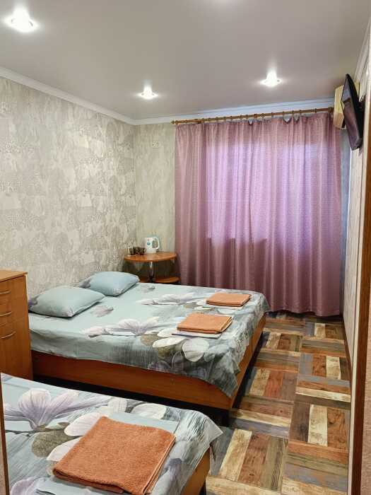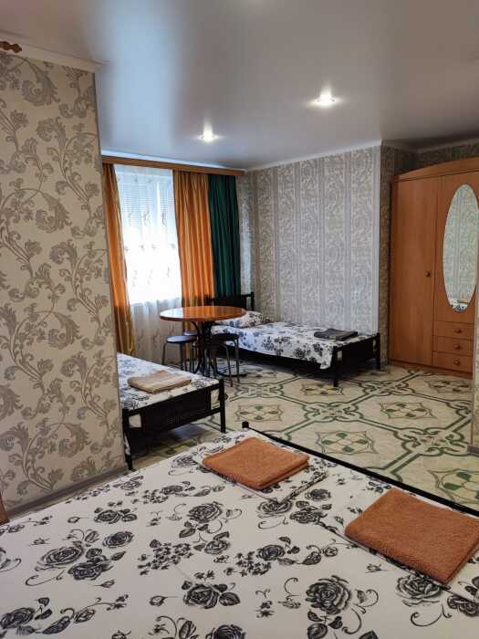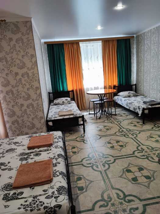 В номере 4 односпальных кровати или 1 двухспальная и 2 односпальные, кресло-кровать.