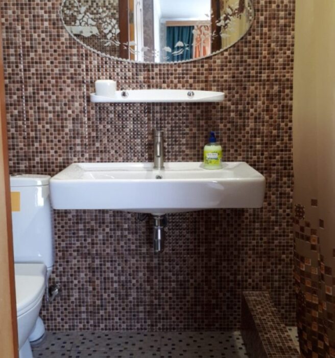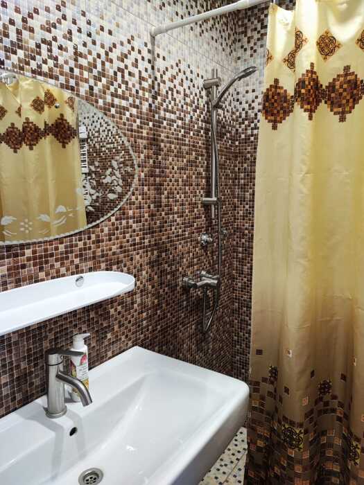 До песчаного пляжа и центра развлечения на набережной 8 минут ходьбы. До рынка, магазинов, аптеки, остановки маршрутки 6 минут. До дельфинария и аквапарка 10 и 25 минут на транспорте соответственно.