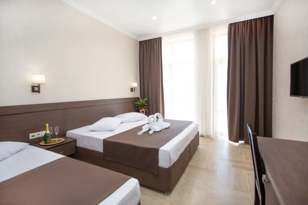 Витязево - идеальное место для семейного и молодежного отдыха. Два больших парка аттракционов, боулинг-клуб, дельфинарий аквапарк «Олимпия», множество кафе и ресторанов, главная набережная «Паралия» - все это в непосредственной близости от отеля.