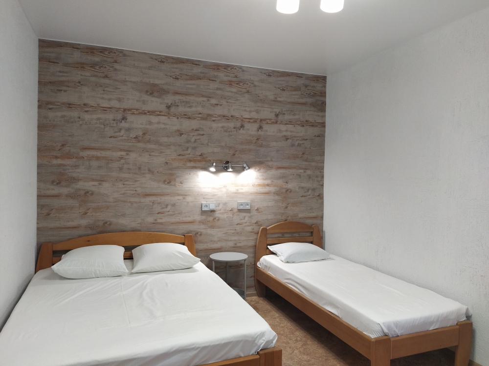 3) отдельные апартаменты класса «стандарт» на 2-3 чел. (комната 14 кв.м + личная кухня-коридор + отдельный санузел с душем, кондиционер) с двуспальной и односпальной кроватями; Размещение животных просьба согласовывать с нами. Сдается и в межсезонье.