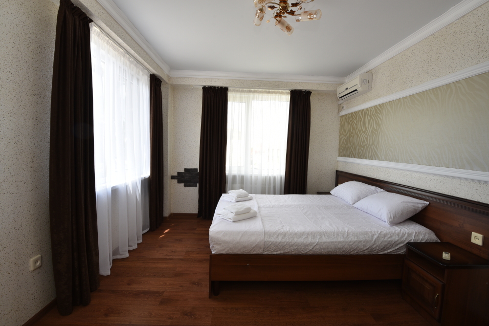 Наш современный гостевой дом расположен практически на берегу Азовского моря в ст. Голубицкая и оснащен всем необходимым для комфортного отдыха семей с детьми и бизнес туристов. Мы принимаем гостей с 2010 года. Наш номерной фонд насчитывает 35 номеров разных категорий от стандарта до люкса, а семьям будут интересны варианты 4 и 5-местного размещения в наших семейных номерах.