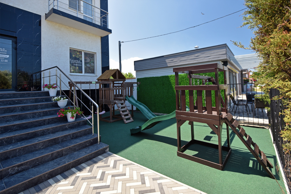 Мы не забыли и про наших гостей с семьями, во дворе гостевого дома расположены детская площадка, летние беседки, мангал, оборудовано место для сушки белья на свежем воздухе. Так же гостевой дом располагает собственной парковкой на 10 машин.