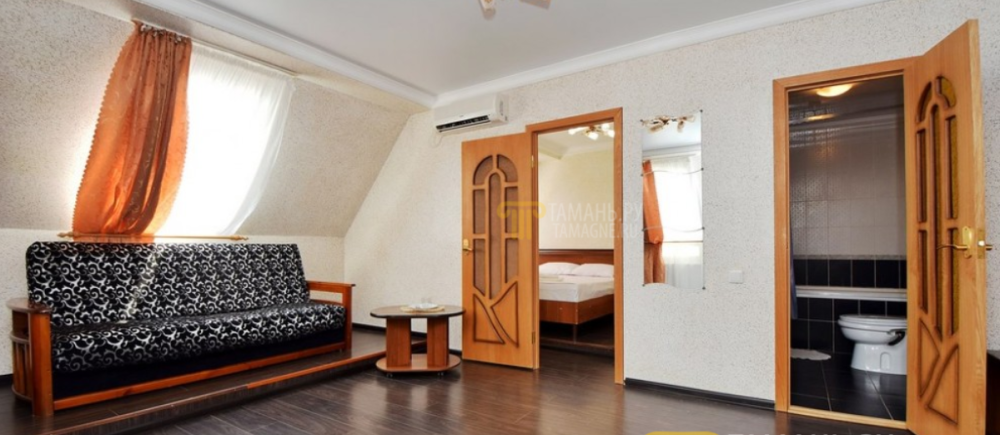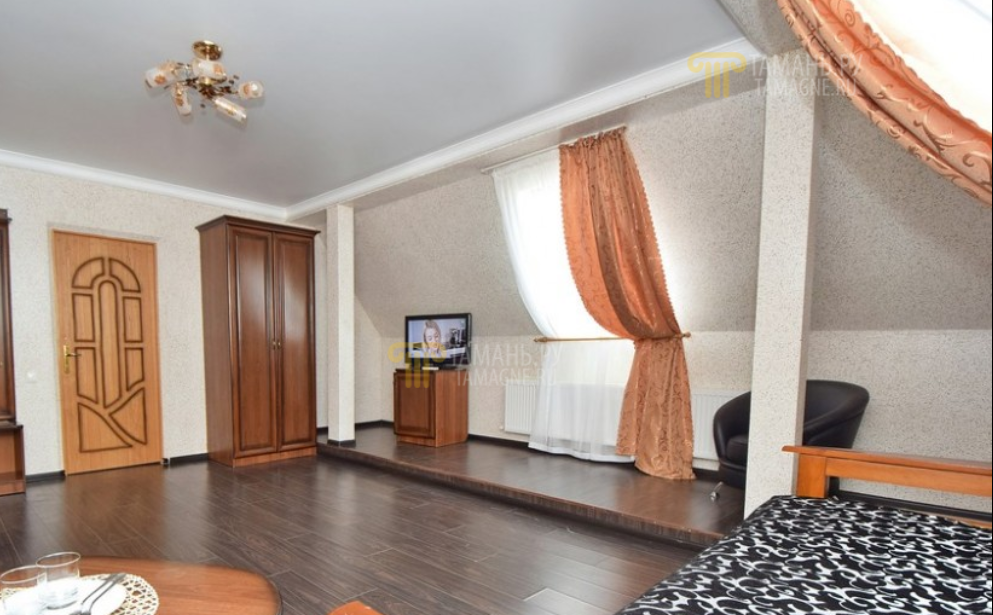 Одно из самых главных достоинств гостевого дома - уникальное расположение, всего через 100 метров от гостевого дома находится пляж Азовского моря, а из номеров повышенной категории открывается прекрасный вид на морскую гладь. На первом этаже гостевого дома располагается кафе «Казачья харчевня», где Вам подадут блюда кубанской домашней кухни, а интерьер предоставит возможность своими глазами увидеть предметы быта казаков и фотографии давних лет.