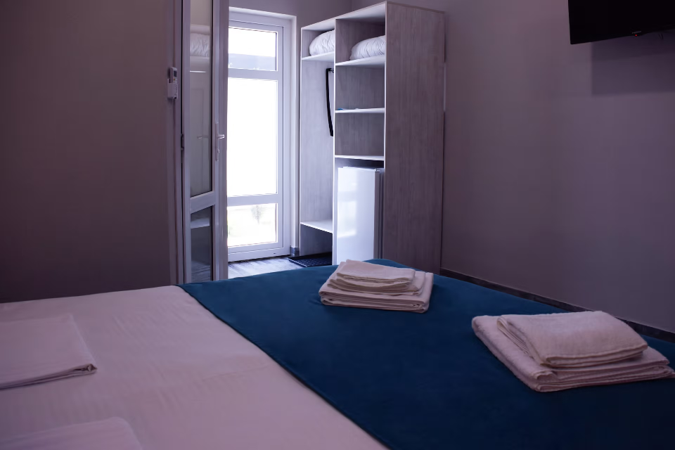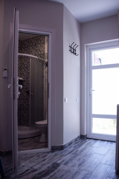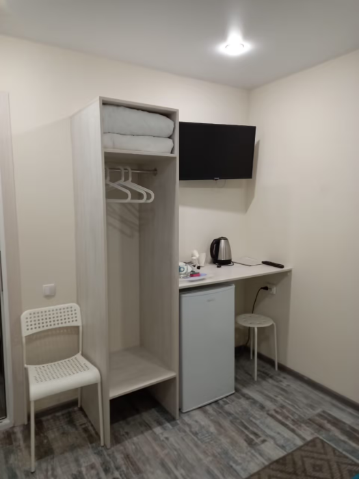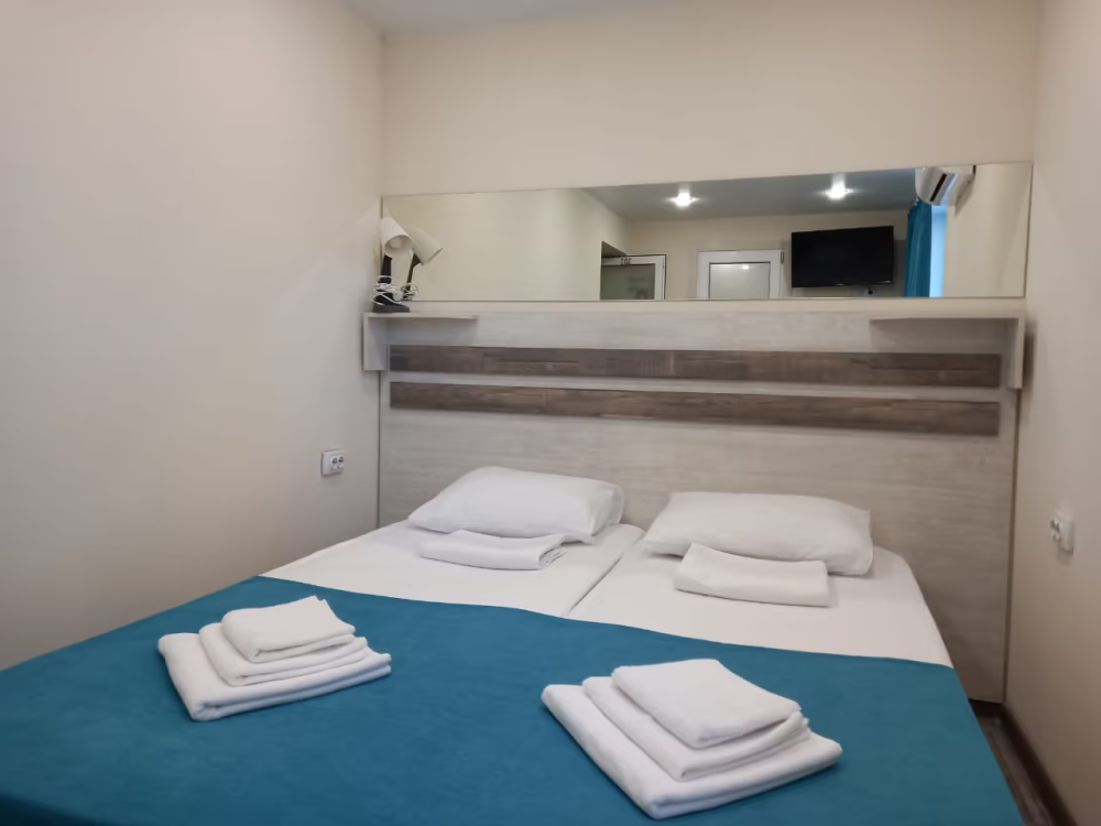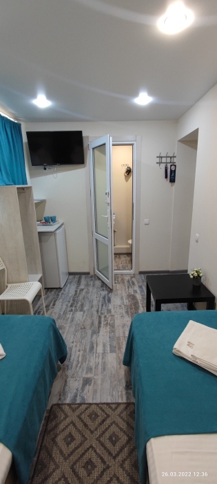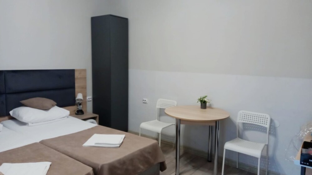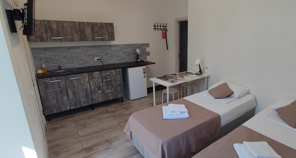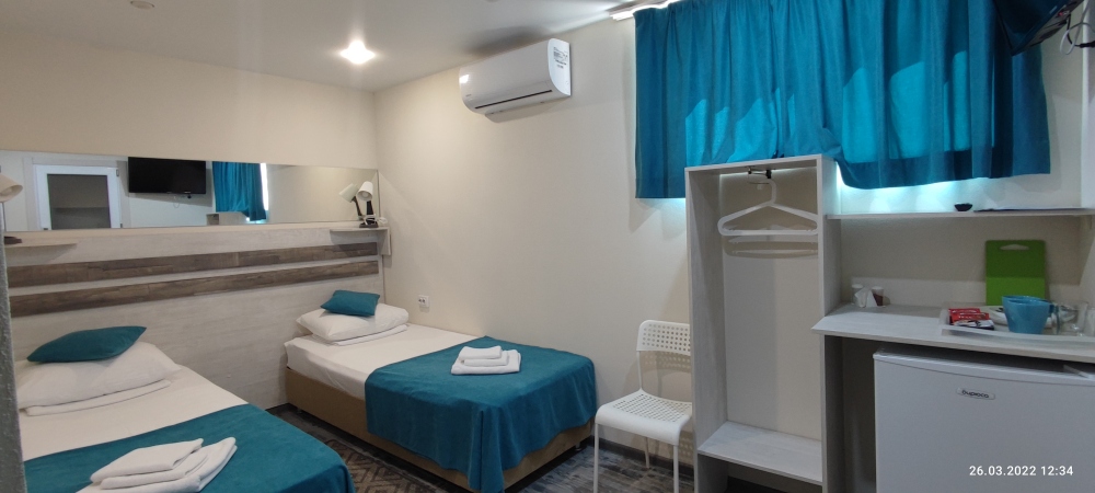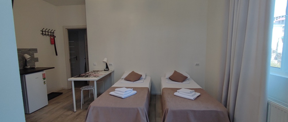 Компактные, уютные, современные номера рассчитаны на 2 основных места, располагаются на 1 этаже. В номере окно выходит в общий коридор.